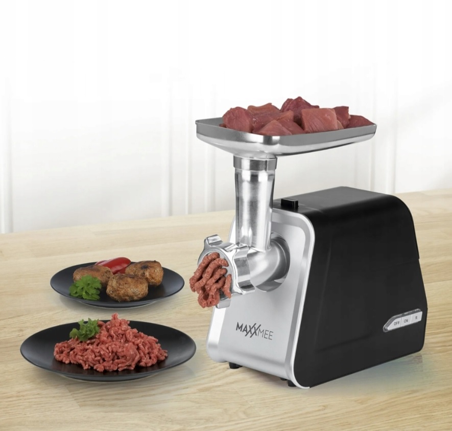 З м'ясорубкою MAXXMEE Power тепер ви можете легко готувати смачні делікатеси, такі як м'ясний фарш, кеббе, сосиски, а також чуррос і тістечка з проріцом. Потужність 1600 Вт забезпечує переробку до 2000 грамів на хвилину. Велика кількість аксесуарів легко замінити, очистити та підтримати вас у всіх ваших творчих ідеях приготування.