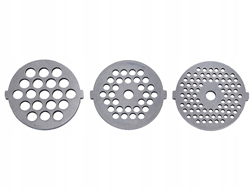 - Ситечко 7 мм – товсті отвори для подрібнення м’яса з характерною структурою. Сіто призначене для приготування ковбас і субпродуктів.