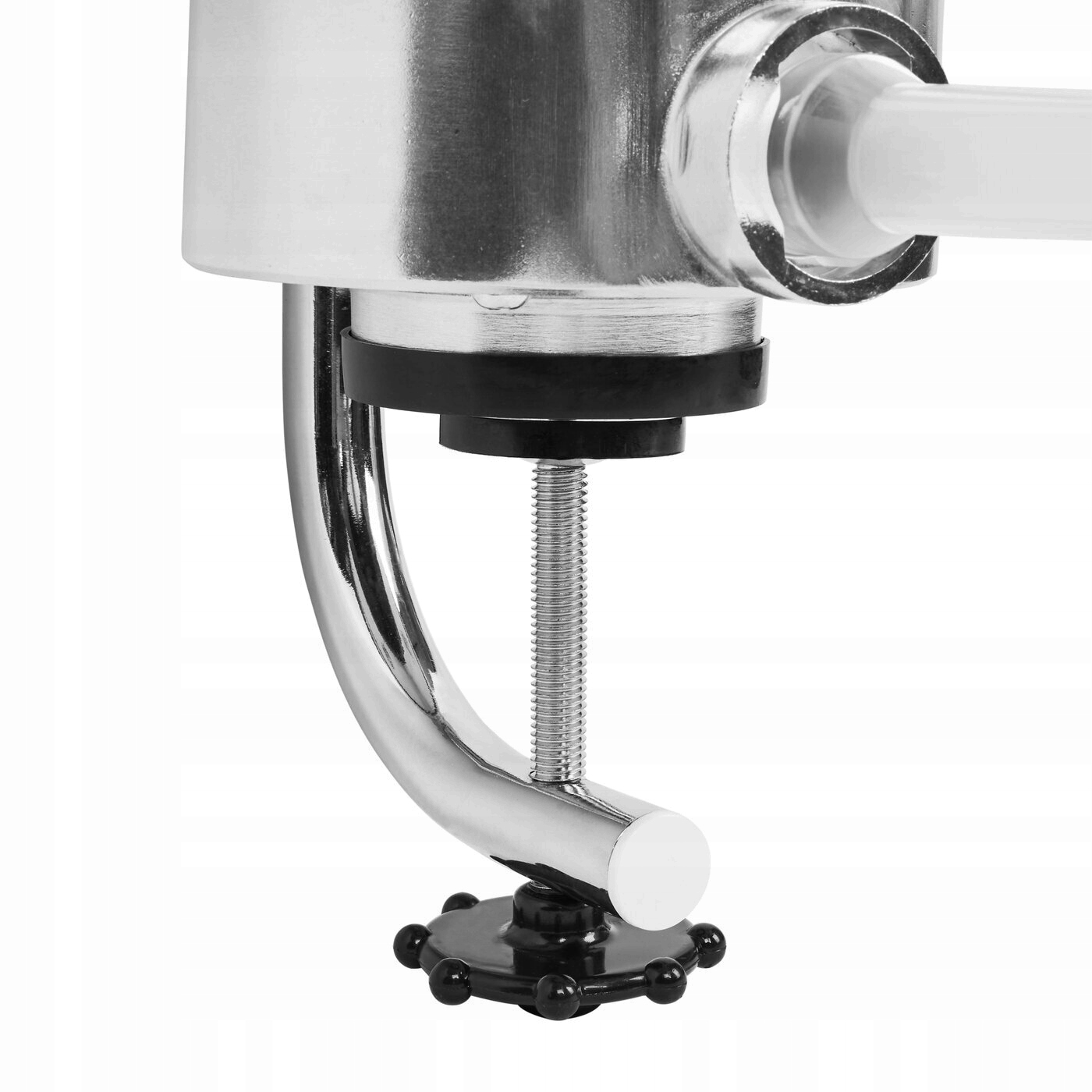 Машина для виробництва ковбас Konighoffer має потужність подачі 3 кг. Виріб виготовлено з безпечних для харчових продуктів матеріалів, у тому числі з нержавіючої сталі. У комплект також входять 4 пластикові дозувальні воронки. Мають різний діаметр: 19/22/25/29 мм. Вертикальна насадка для сосисок кріпиться до стільниці за допомогою регульованого хомута. Полегшить роботу також силіконова кришка на поршні м'ясорубки, яка штовхає м'ясо. Набивка приводиться в дію сталевою рукояткою з дерев'яною ручкою. Ви можете легко скласти його, випрати та зберігати. З нього можна приготувати ковбаску на Великдень. Більше того, ви доповните та розширите можливості, які надає добре приправлений фарш. Алюмінієві частини конструкції моделі не контактують з їжею під час використання наповнювача. До них належать, наприклад, кривошип і монтажне кільце воронки.