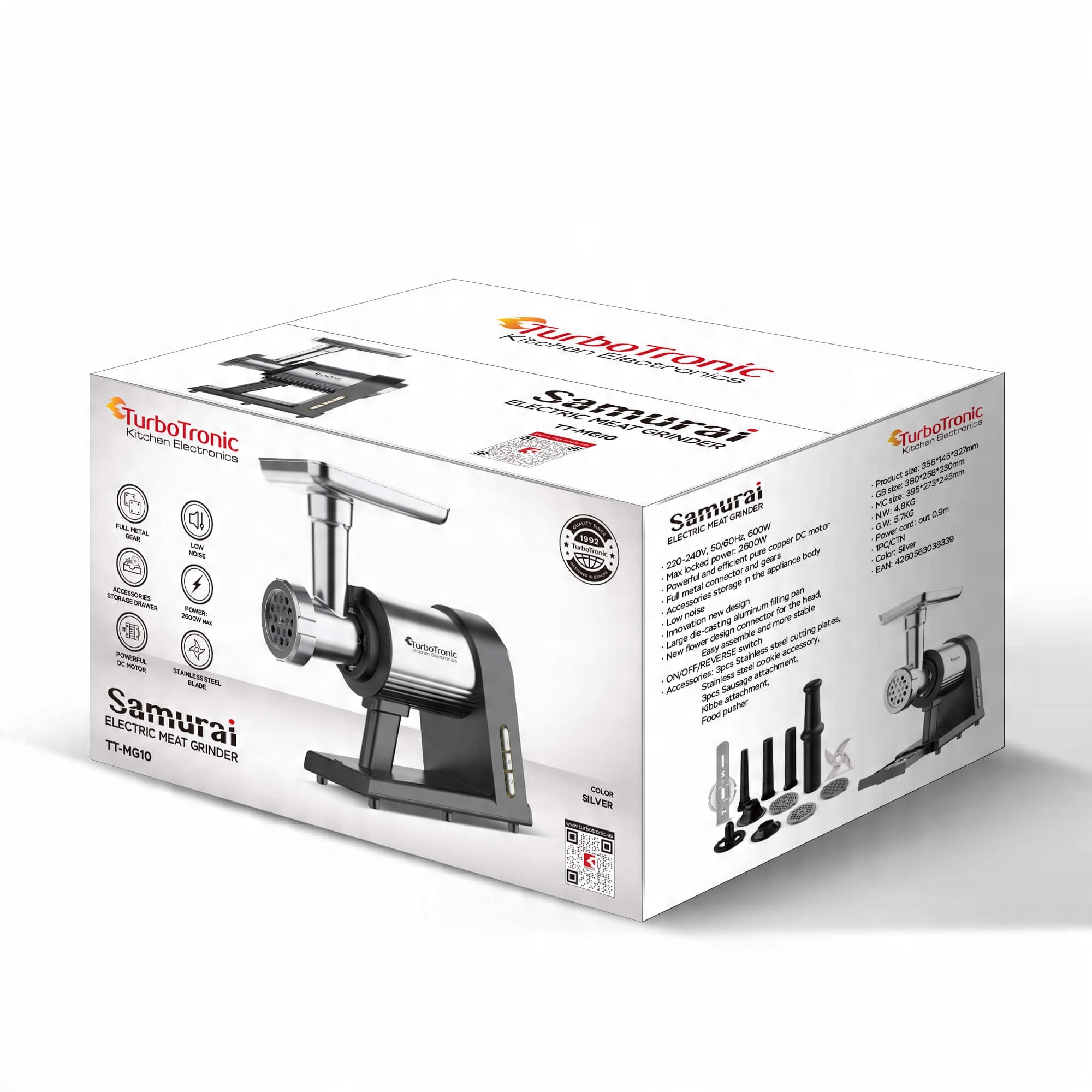 М'ясорубка TurboTronic для ковбас і пряників, потужність 2600Вт