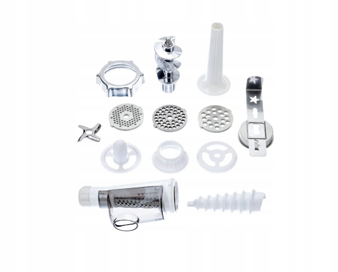 - наповнювальний лоток, вхідна/вихідна воронка та гвинт із литого алюмінію: складаються в транспортний гвинт, хрестоподібний ніж і стопорне кільце