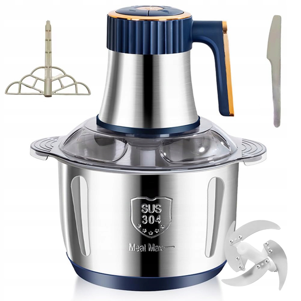【5-літрова чаша з нержавіючої сталі】Електрична м’ясорубка оснащена 5-літровою чашею з нержавіючої сталі. Велика місткість дозволяє готувати смачні страви за менший час, економлячи час. При цьому такий чоппер довговічніший, ніж пластикова або скляна тара. Він міцніший, здоровіший і ударостійкий, що забезпечує довговічність і більшу безпеку під час використання.