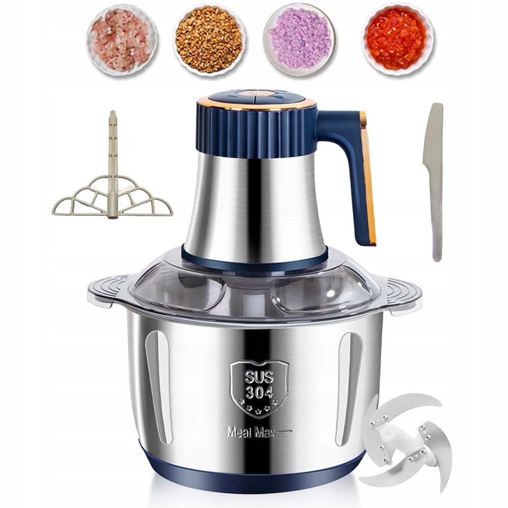 【5-літрова чаша з нержавіючої сталі】Електрична м'ясорубка оснащена 5-літровою чашею з нержавіючої сталі. Велика місткість дозволяє готувати смачні страви за менший час, економлячи час. При цьому такий чоппер довговічніший, ніж пластикова або скляна тара. Вона міцніша, здоровіша та стійка до ударів, що забезпечує довговічність і більшу безпеку під час використання.