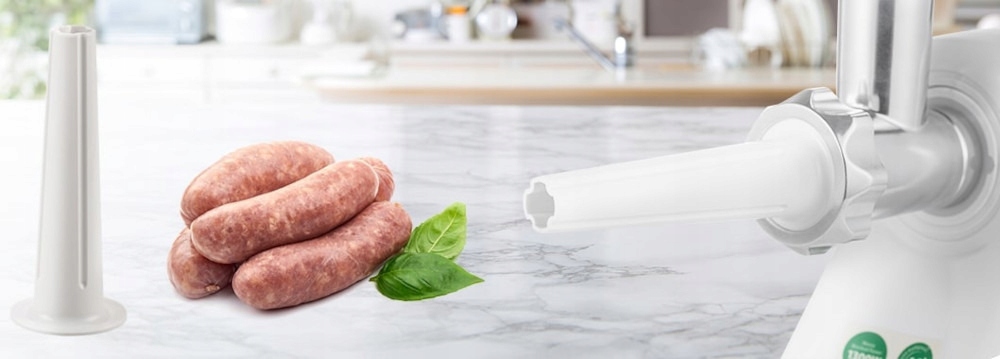 Смачна домашня ковбаса - тепер її можна приготувати швидко та легко. Використовуйте спеціальну насадку, завдяки якій м'ясо набуде правильну форму.