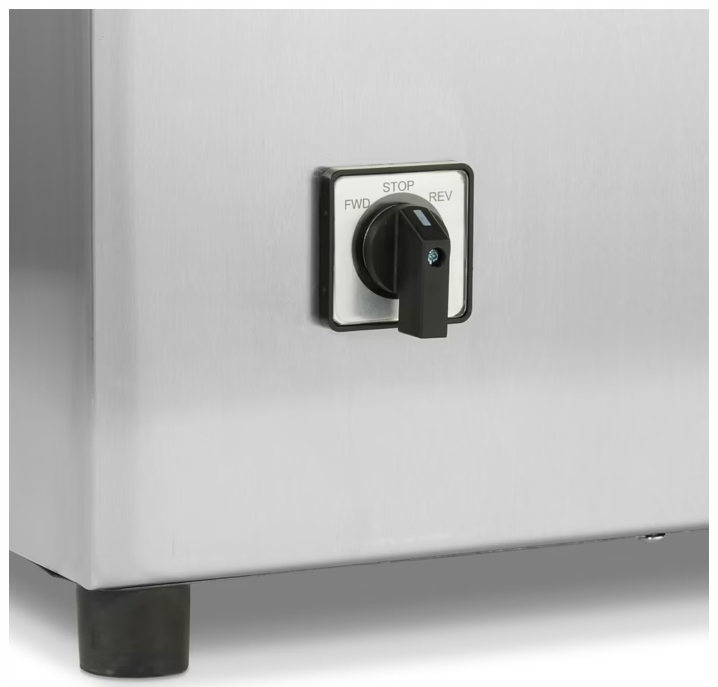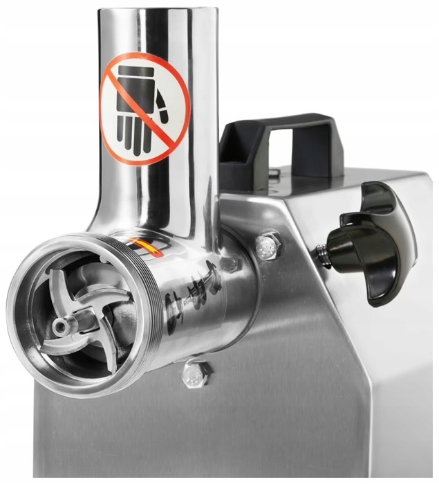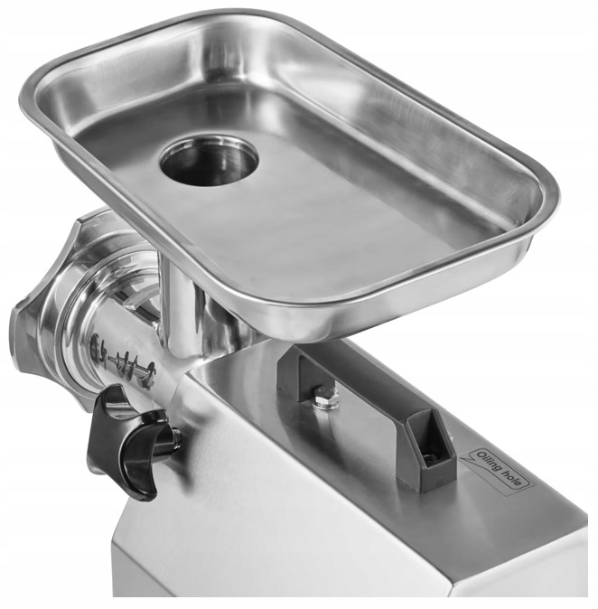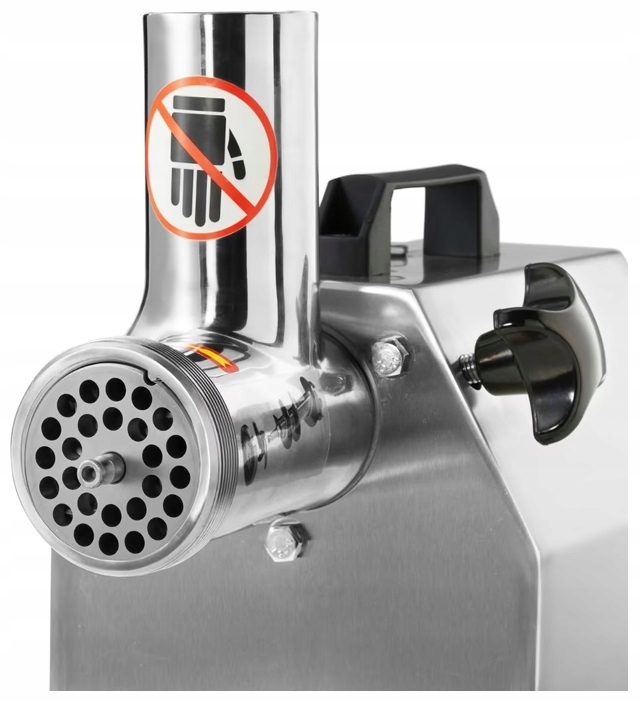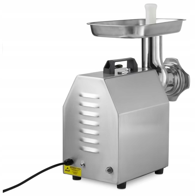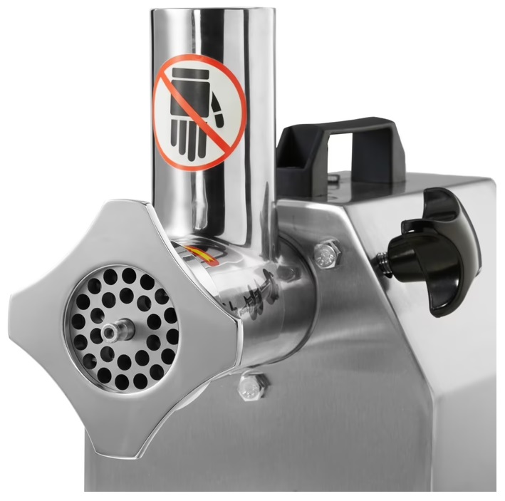 вперед і назад. Він може легко виробляти 220 кг фарш м'яса на годину . Це ідеальне рішення, якщо на кухні потрібні великі кількості фаршу м'яса або начинки. М’ясна машина для подрібнення проста у використанні . Спочатку розмістіть необхідний щит, а потім просто увімкніть пристрій. Використовуйте прикріплений обмежувач, щоб натиснути м'ясо до леза. М'ясо можна зібрати на лотку або в мисці і готовий до використання.