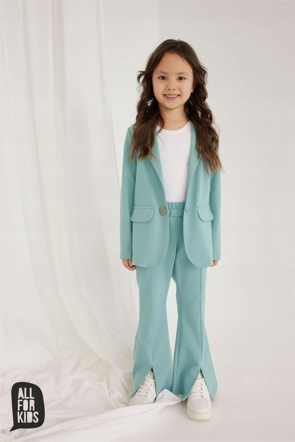 М'ятний жакет для любителів спортивної елегантності. Модна куртка створена в Польщі брендом All For Kids зі зручної в носінні світшотної тканини.