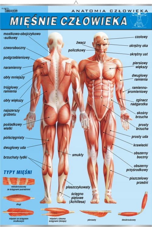 Навчальна дошка із зображенням будови м'язової системи людини. Також містить ілюстрації типів м’язів.