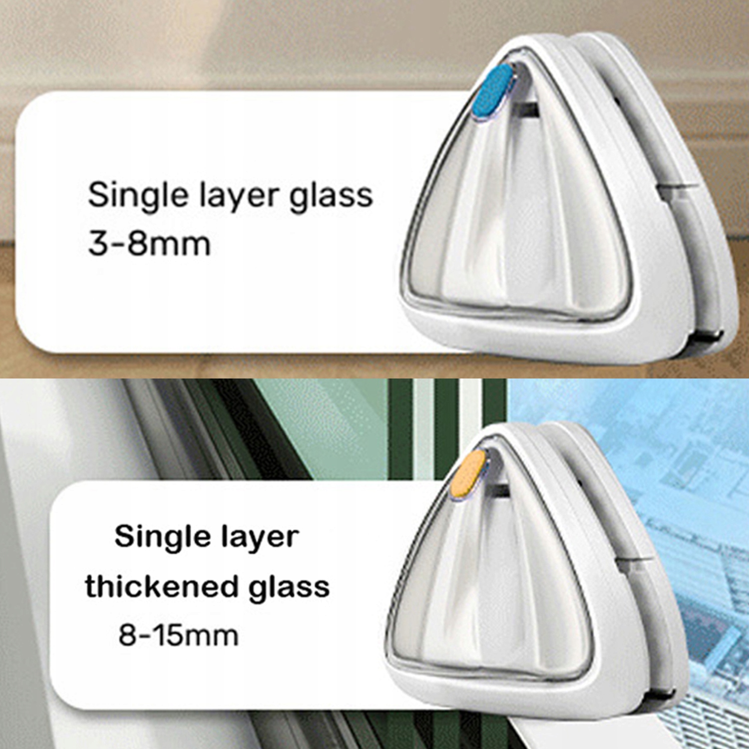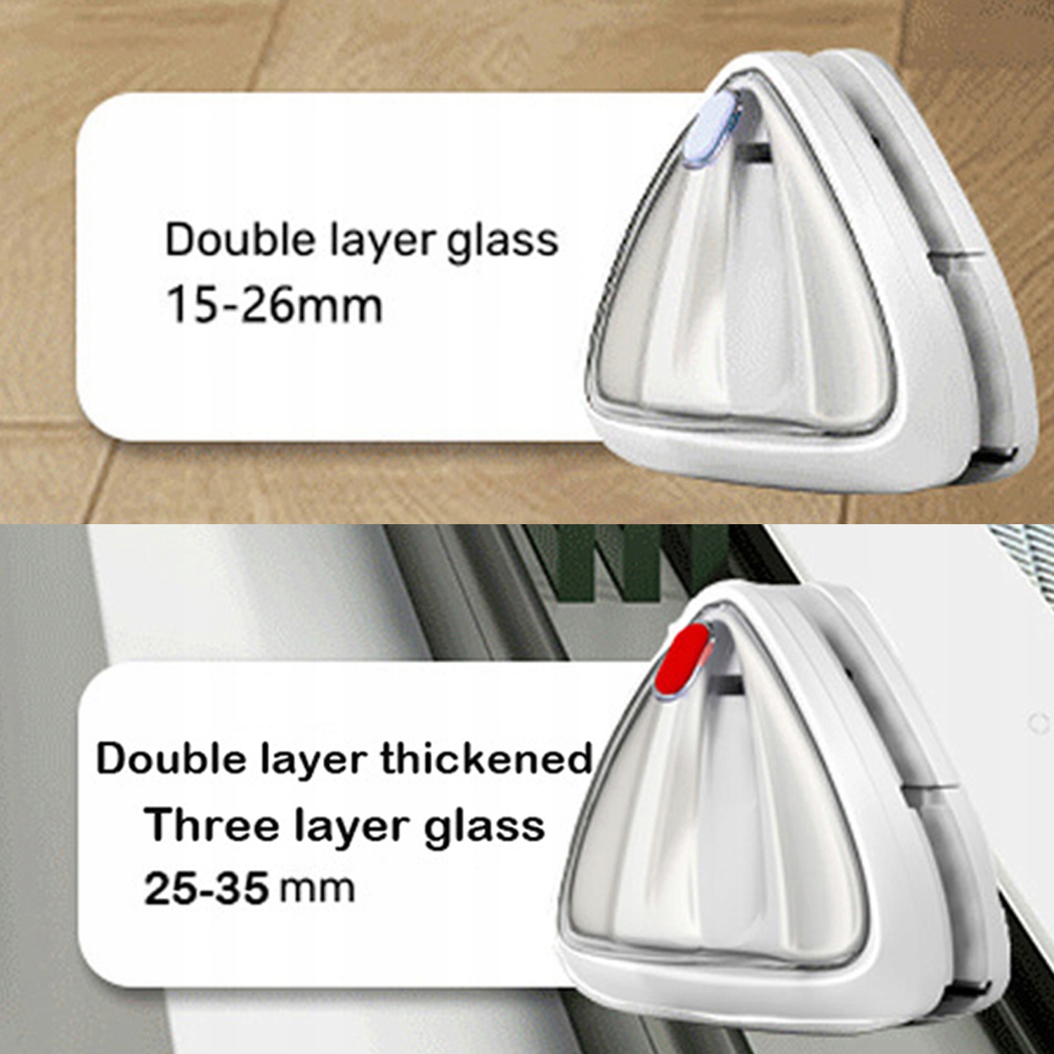 Для товстого або двошарового скла потрібна сильна магнітна сила, будь ласка, використовуйте цей магнітний мийник вікон, тримаючи ручку мийника вікон, ви можете повернути її на 90°, щоб відкрити, або застосувати тиск, щоб активувати його, дію під час відкривання чи закривання . Ми оснащені магнітними ізоляційними прокладками проти защемлення, щоб захистити безпеку кожного користувача.