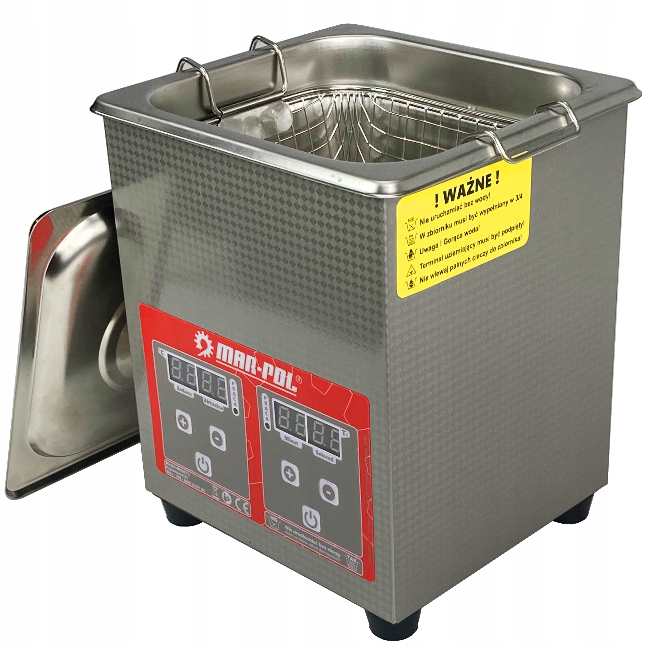 Всі параметри відображаються на РК-екрані. Управління всім пристроєм просте та інтуїтивно зрозуміле. Мийка також має ізоляційні перетворювачі, які забезпечують додатковий захист очищуваних виробів.