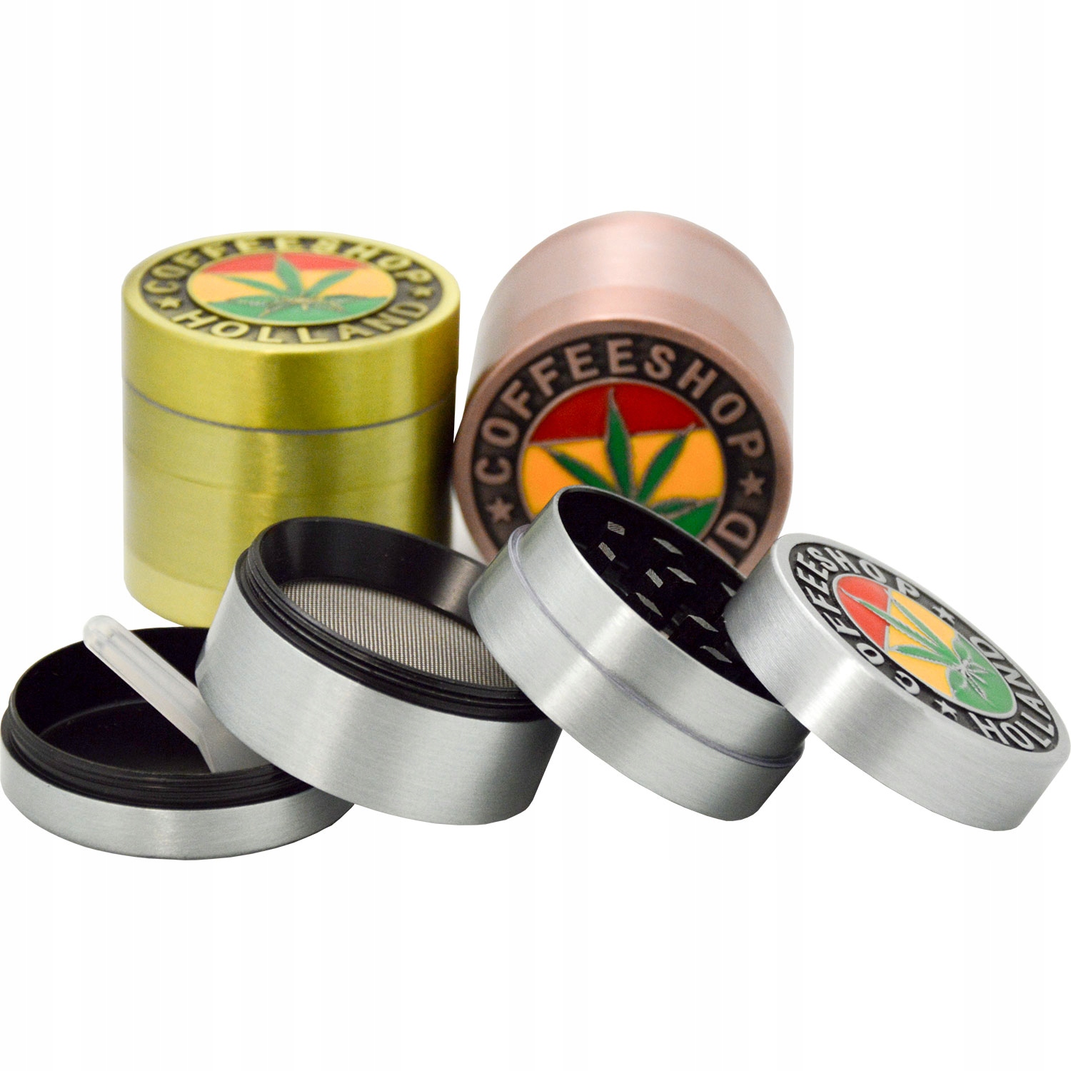 Подрібнювач COFFEESHOP, виготовлений із міцного металу, стійкий до пошкоджень і забезпечує тривале ефективне використання. Він містить ситечко та пилкову камеру, що дозволяє максимально використовувати мелені трави. Точні леза гарантують рівномірне подрібнення, а магнітна застібка тримає все закритим під час використання.