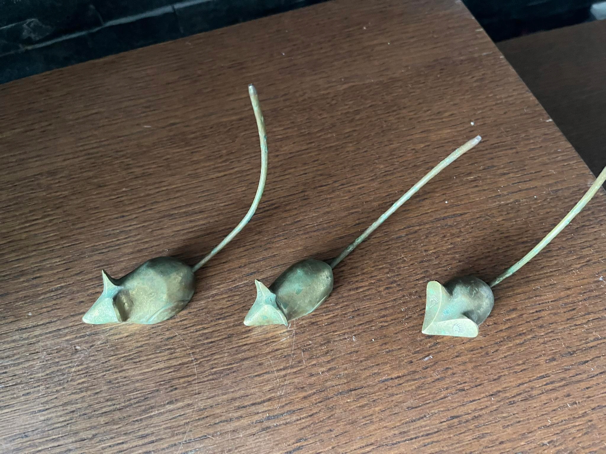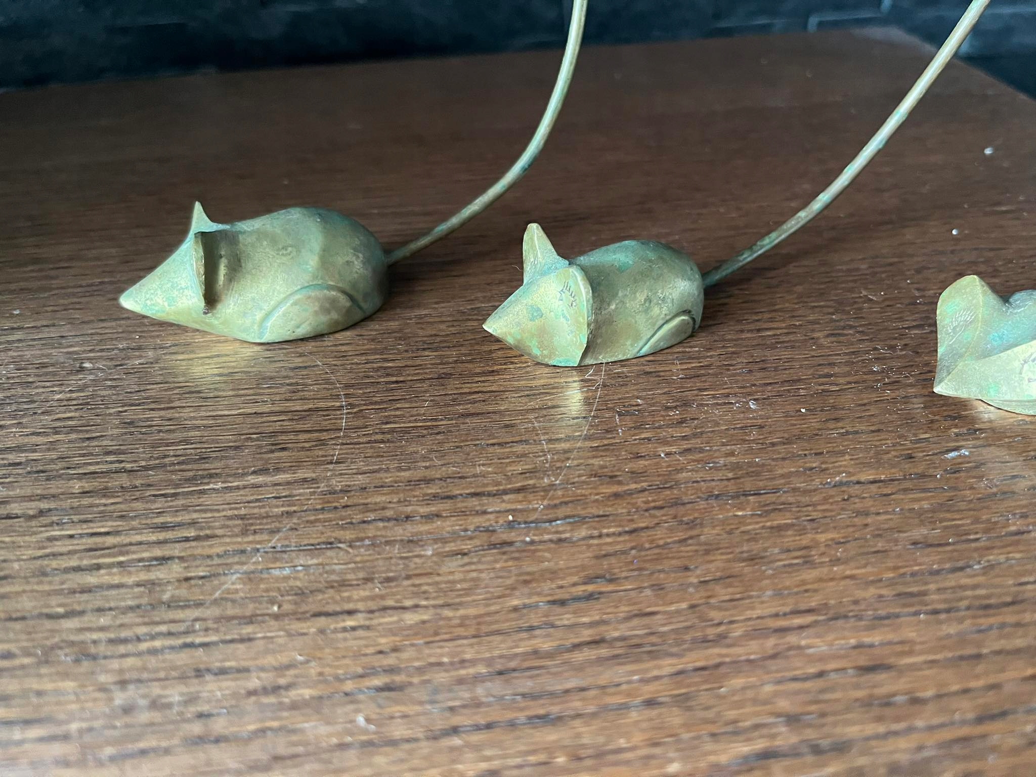 Myszki mosiężne figurki mosiądz 3 sztuki
