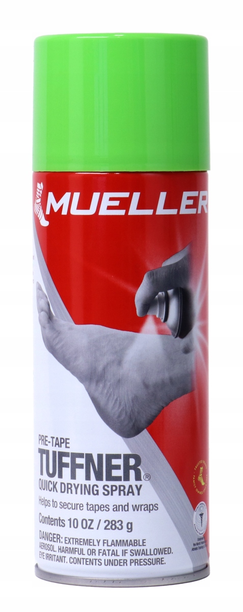 клей під стрічкою mueller зручно використовувати через спрей. Клей під лизаннями може використовуватися безпосередньо до шкіри або на стрічці, завдяки якому вдосконалюється адгезія плям до шкіри. Клей простий і зручний для застосування , а велика ємність дозволяє використовувати продукт довго. Клейкі нижні частини мають особливе використання у пацієнтів/спортсменів у місцях неправильної форми або в згинах, таких як лікть/коліно та в місцях, що піддаються високій вологості, наприклад, рук і ніг. Клей під вставкою означає, що стрічка не буде знятись і виконає свою функцію. Адгезіонат Стрічка не відшаровується і виконає свою функцію,