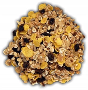 Інгредієнти: зернові пластівці 58,5% (овес, пшениця, ячмінь), родзинки 12% (родзинки, соняшникова олія), кукурудза пластівці 9,5% (крупа кукурудзяна, цукор, екстракт ячмінного солоду, сіль), пластівці пшенично-кукурудзяні 8,5% (зерно пшениці цільне, цукор, екстракт ячмінного солоду, сіль), насіння льону 7,1%, насіння соняшнику 4,4%. Продукт може містити арахіс, інші горіхи та молоко.
