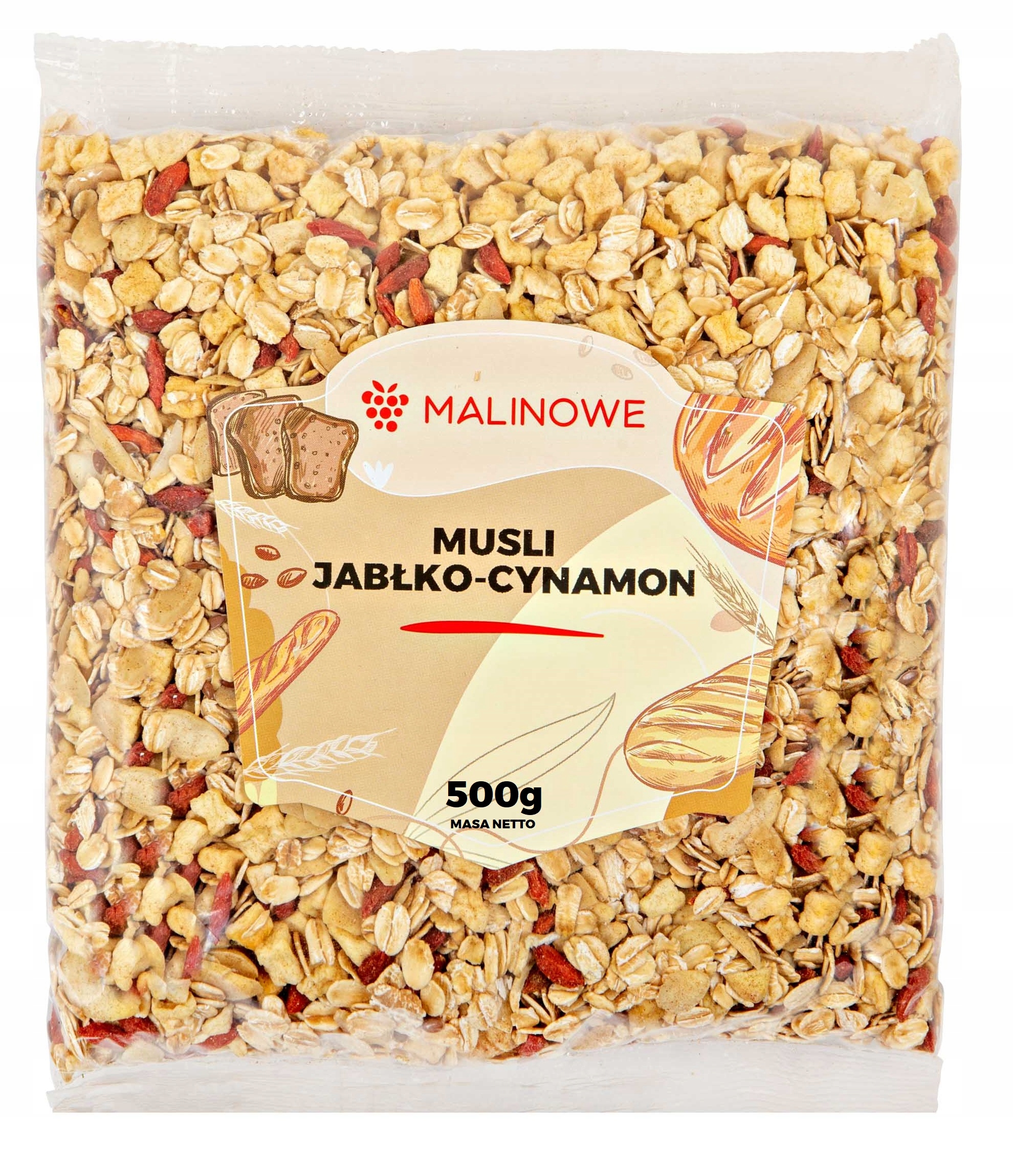 Це суміш пластівців вівса, сушеного яблука, пластівців мигдалю, ягід годжі, коричневого льону і корицею. Поєднання цих кількох продуктів дає нам чудовий ефект мюслі. Ідеально підходить для сніданку або перекусу протягом дня.