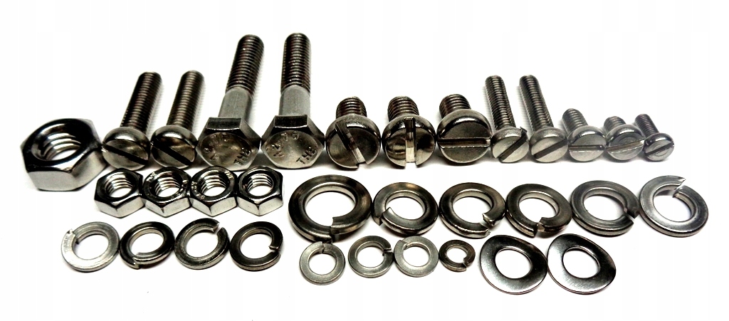 Набір складається з елементів з хромонікелевої нержавіючої сталі класу A2 70. У набір входять болти, гвинти, гайки та шайби, розділені на 12 окремо упакованих груп, що дозволяє безпроблемно збирати окремі елементи мотоцикла.