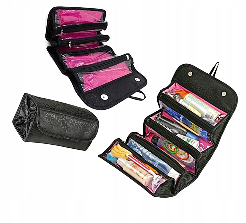 Крім того, косметика сумка має a ручка, завдяки якій розкладену косметичку можна повісити на гачок у ванній або на двері.