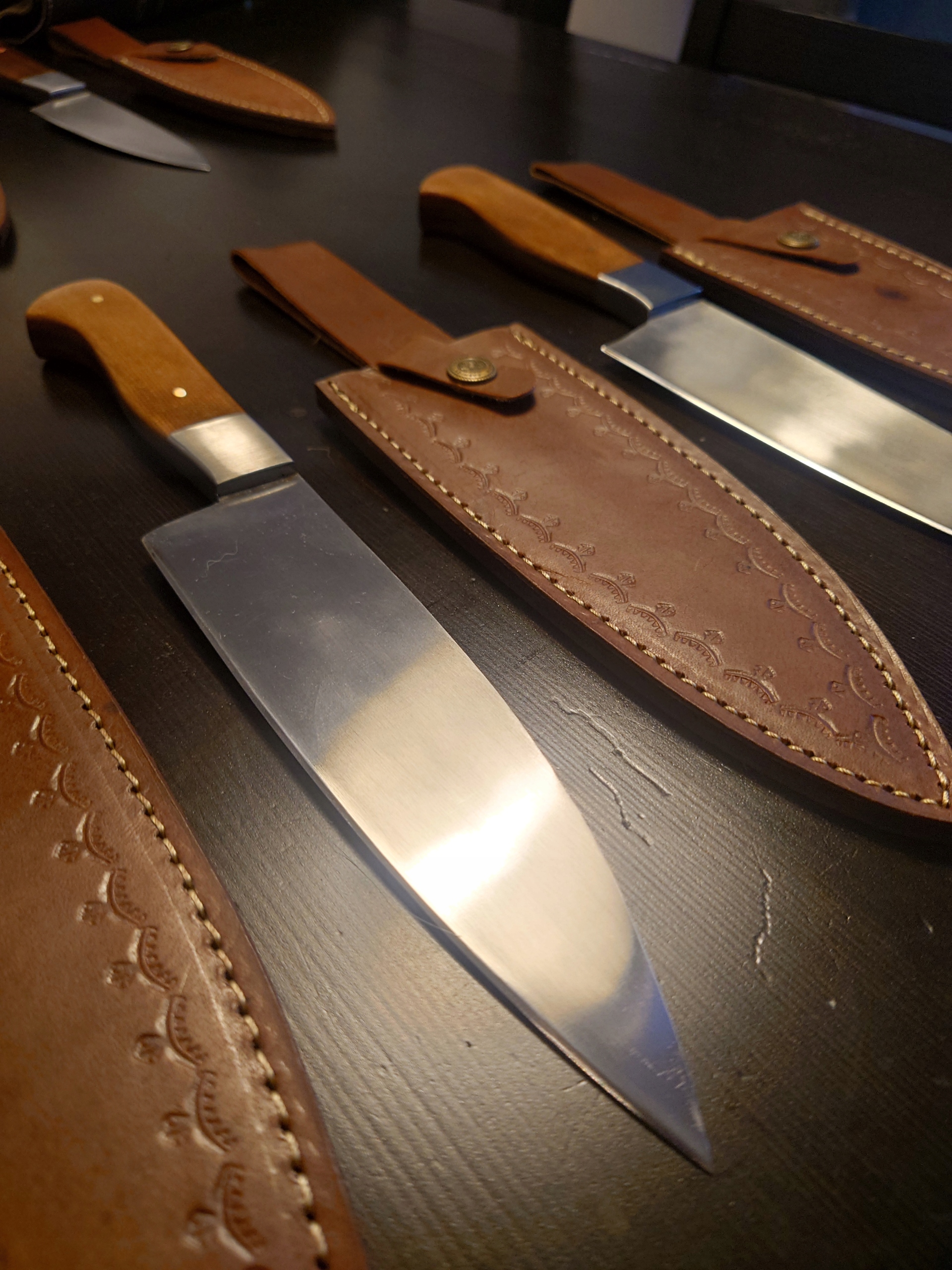 Nóż kuchenny - hand made, pochwa skórzana