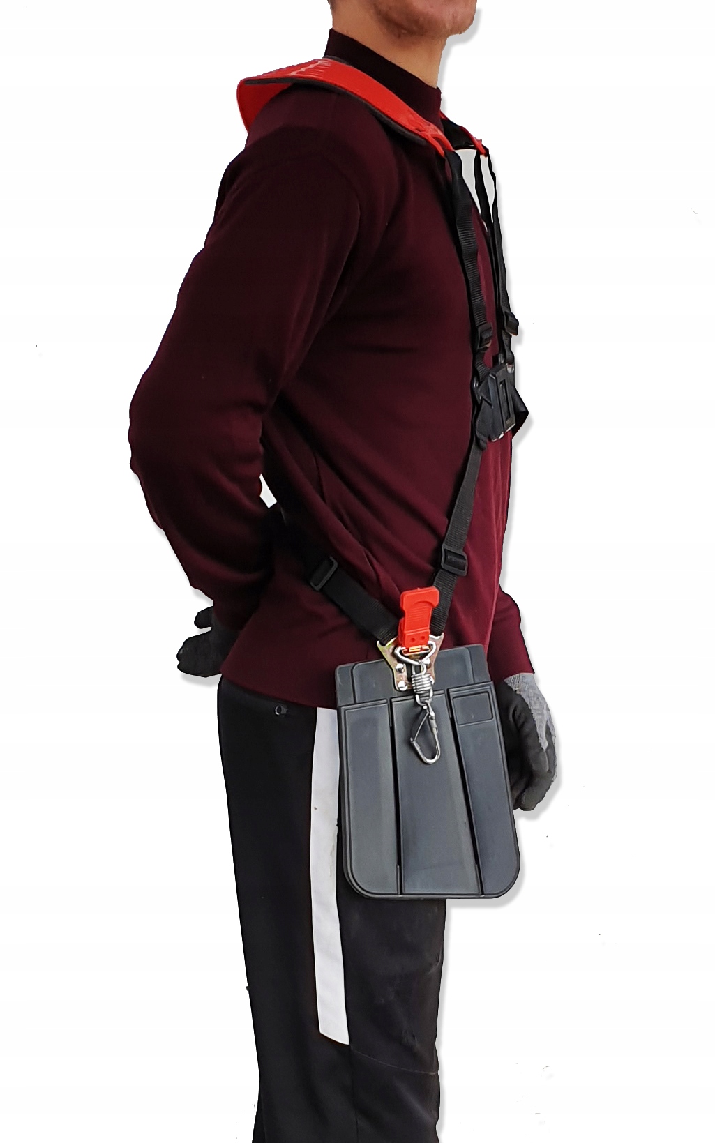 - Пояс оснащений фіксатором для екстреного відстібання коси однією рукою.