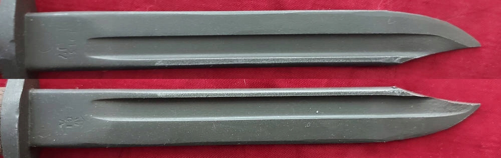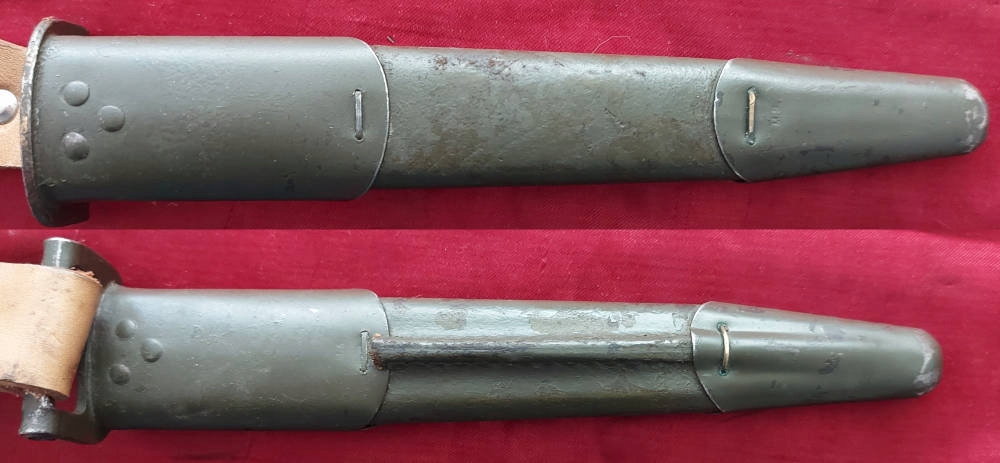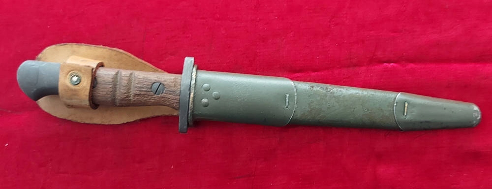 Багнет був перетворений на траншейний ніж у цей період. Клинок і піхви були вкорочені, а кільце на хрестовині видалено. В наш час нічого складного.