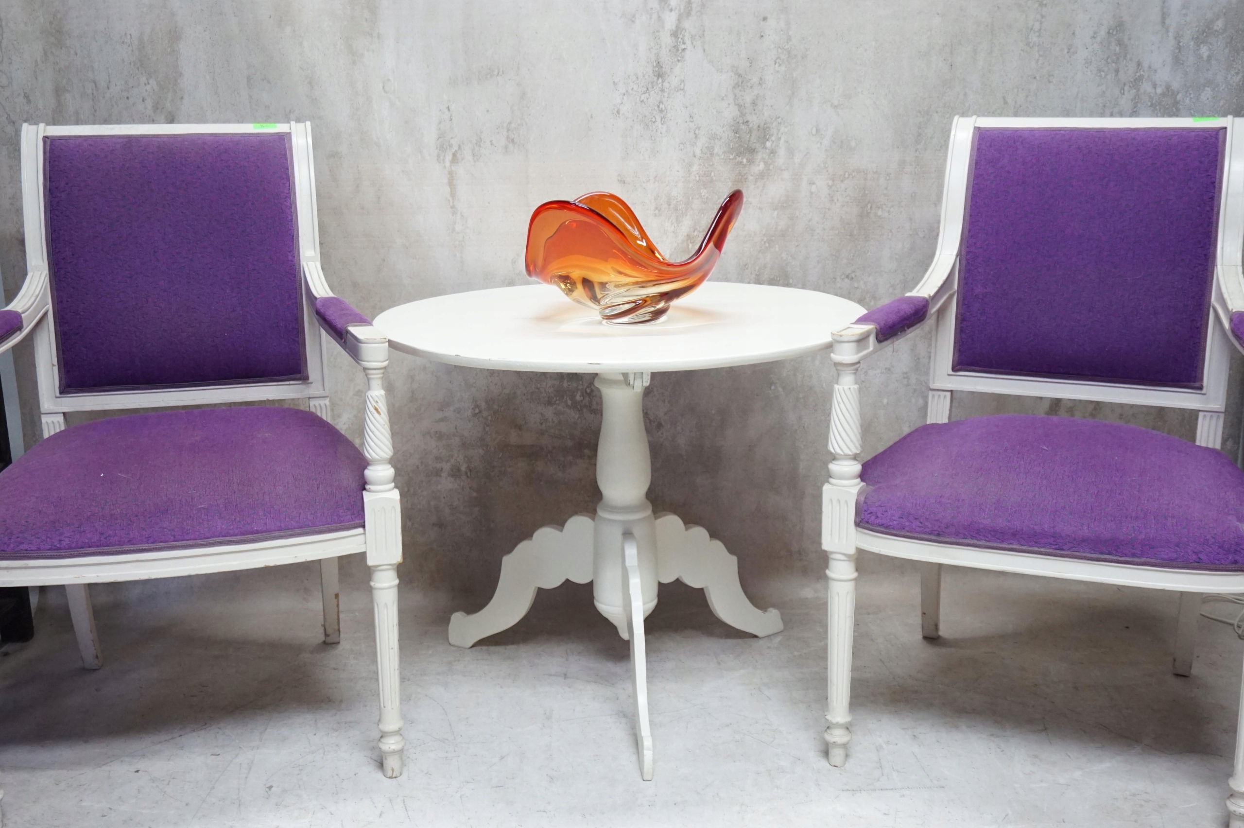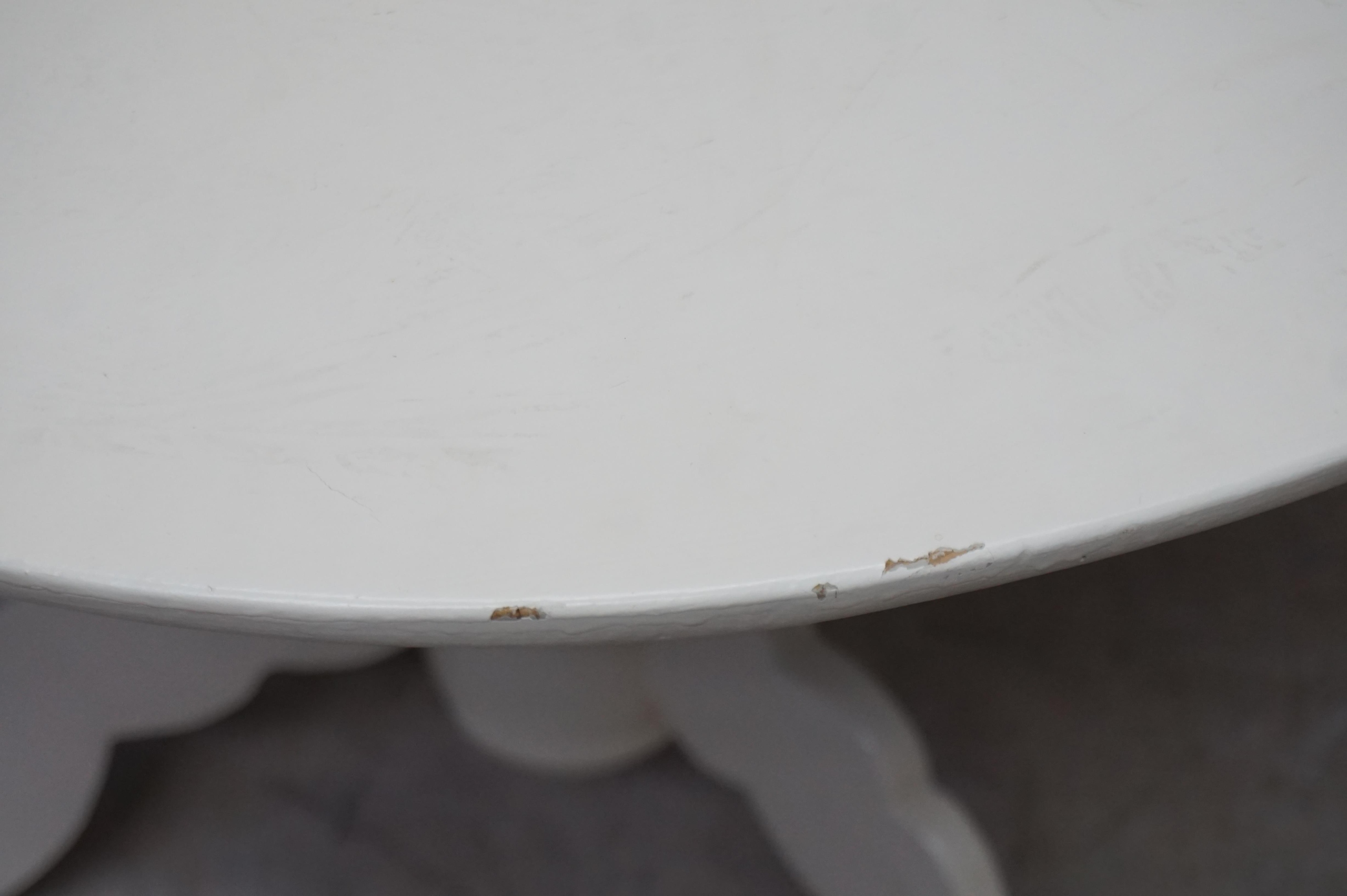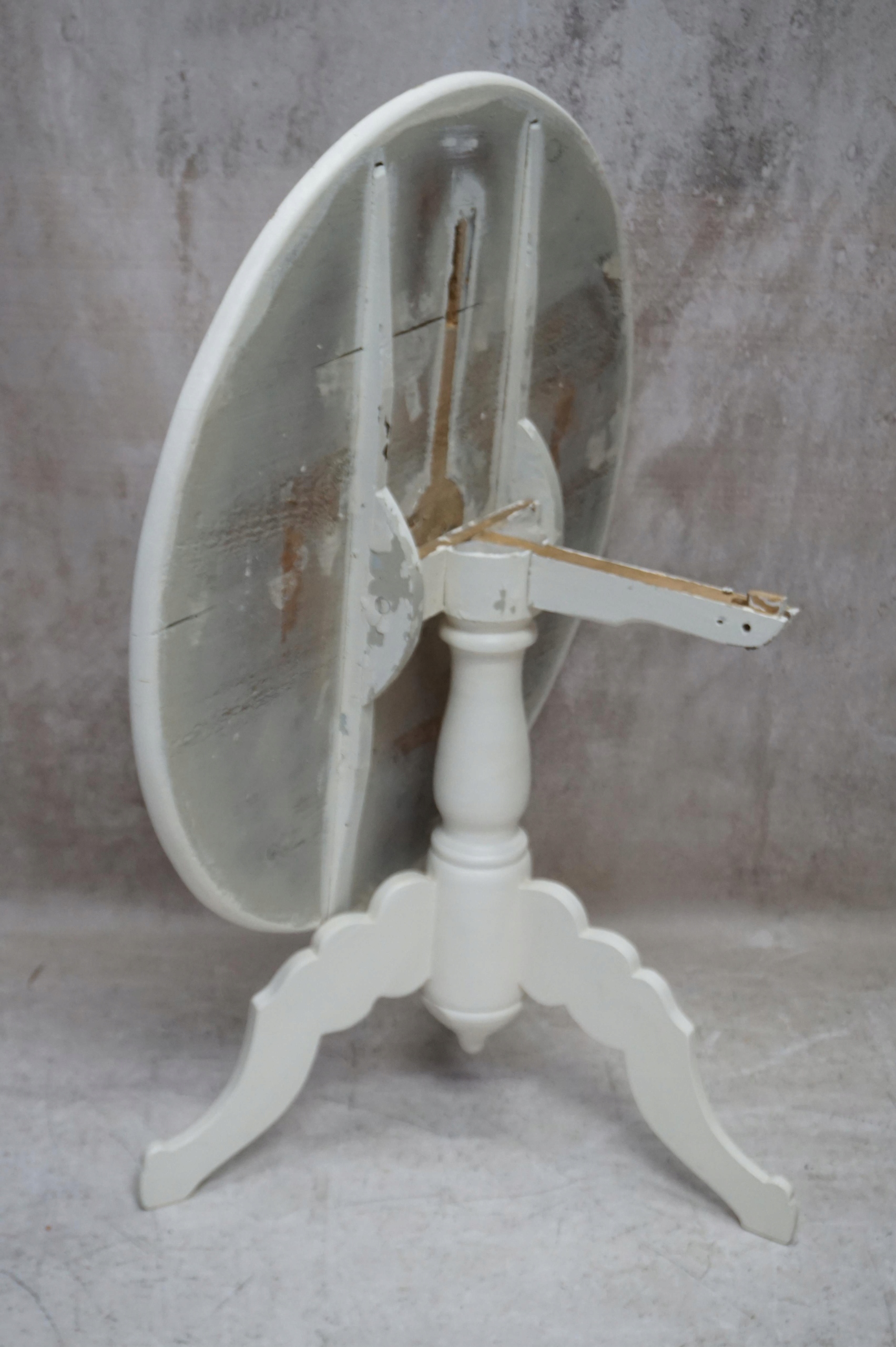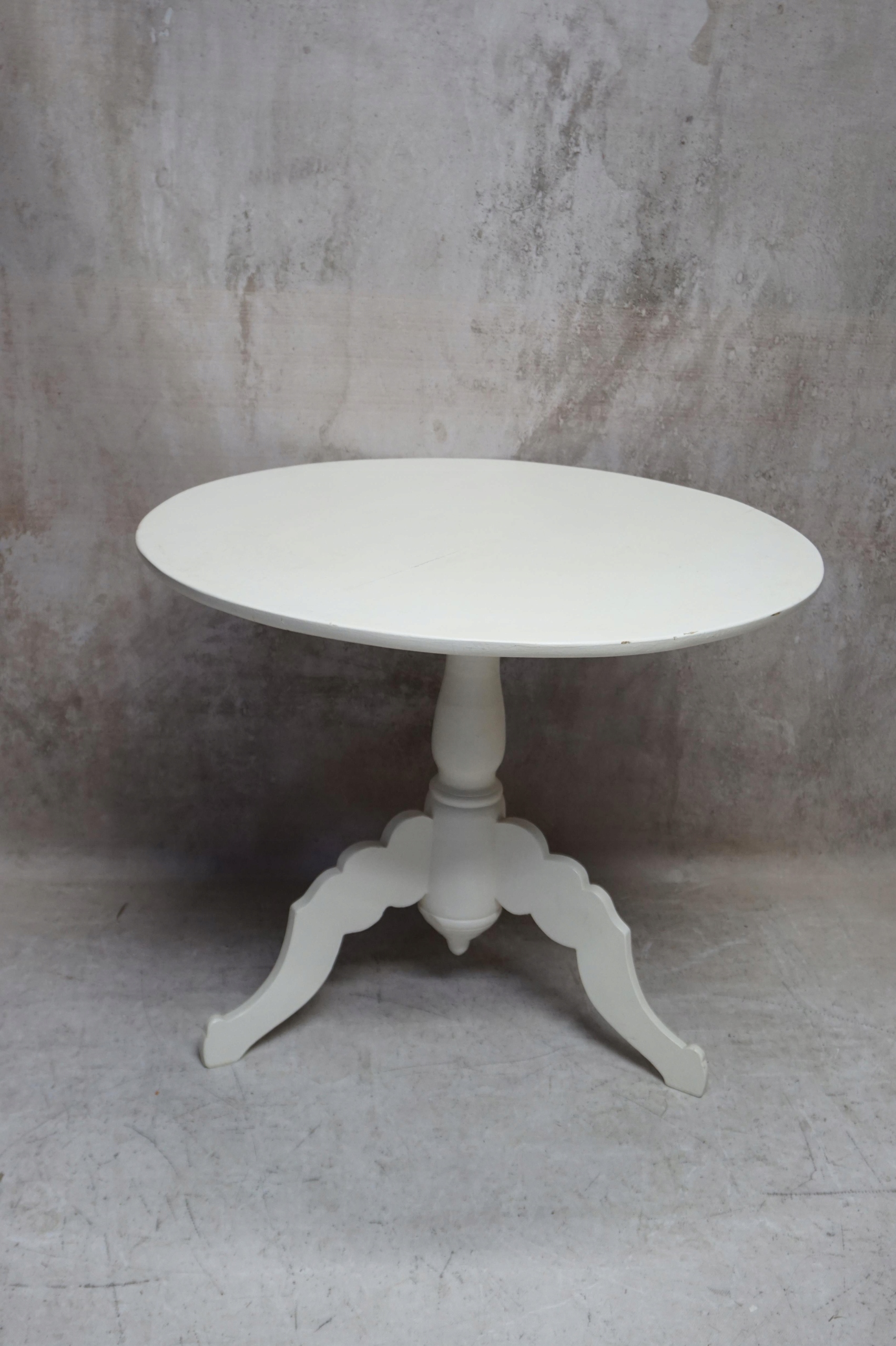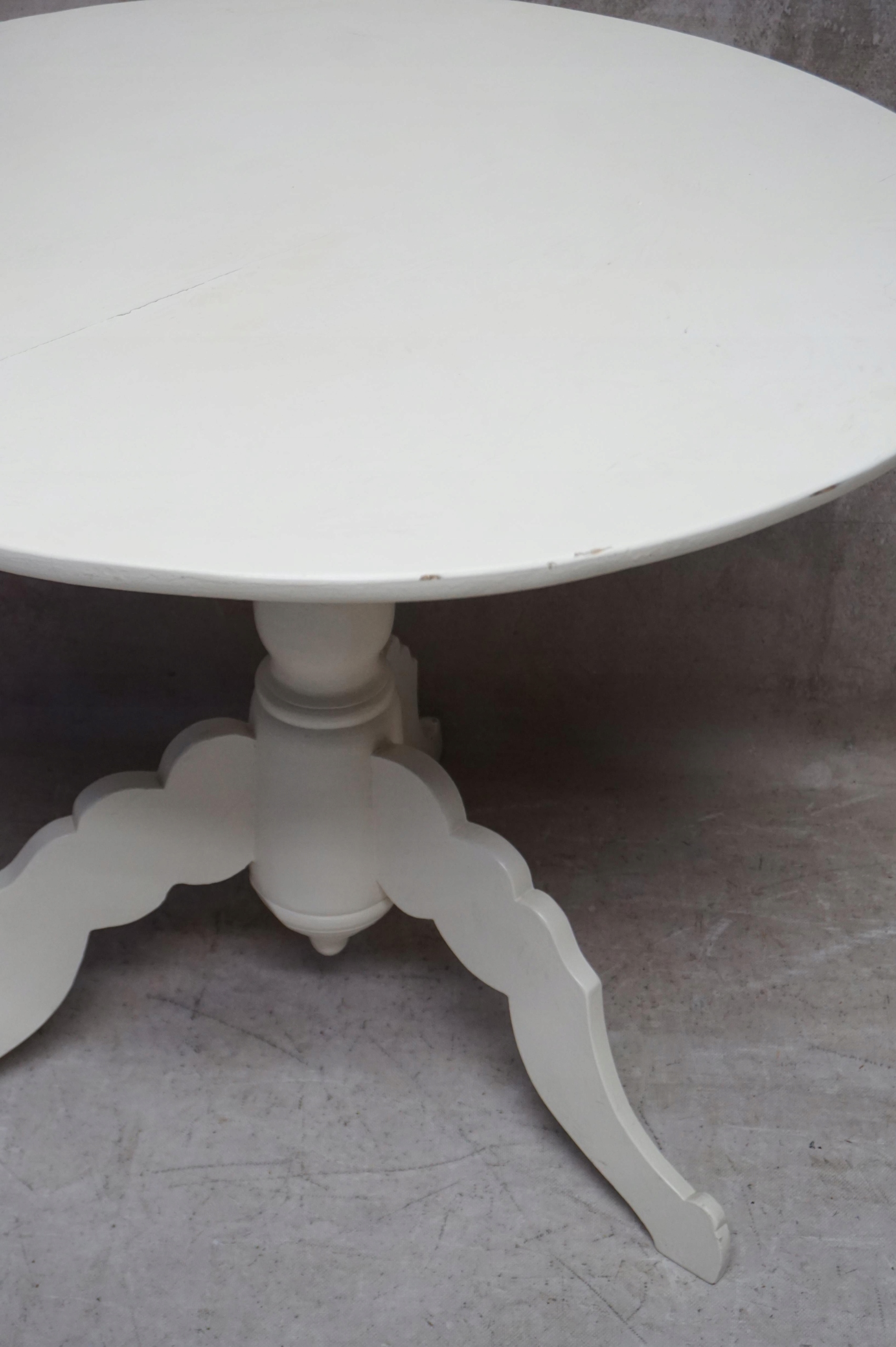 білий круглий стіл. Основа закінчується штативом