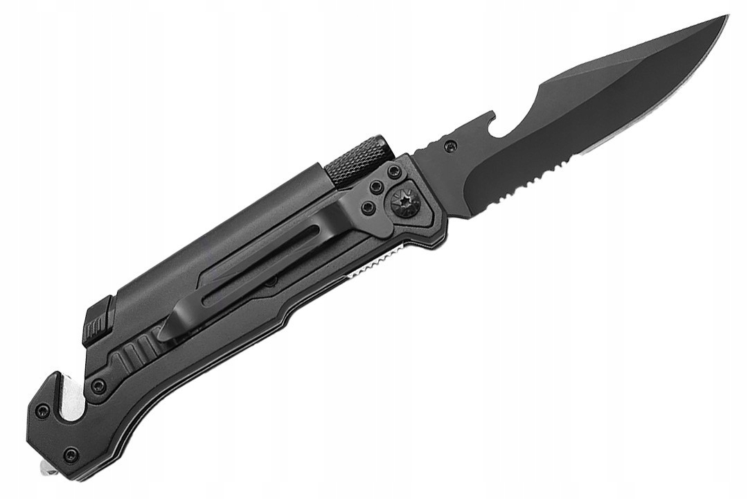 Nóż ratowniczy składany BSH 3w1 zbijak krzesiwo latarka przecinak EDC