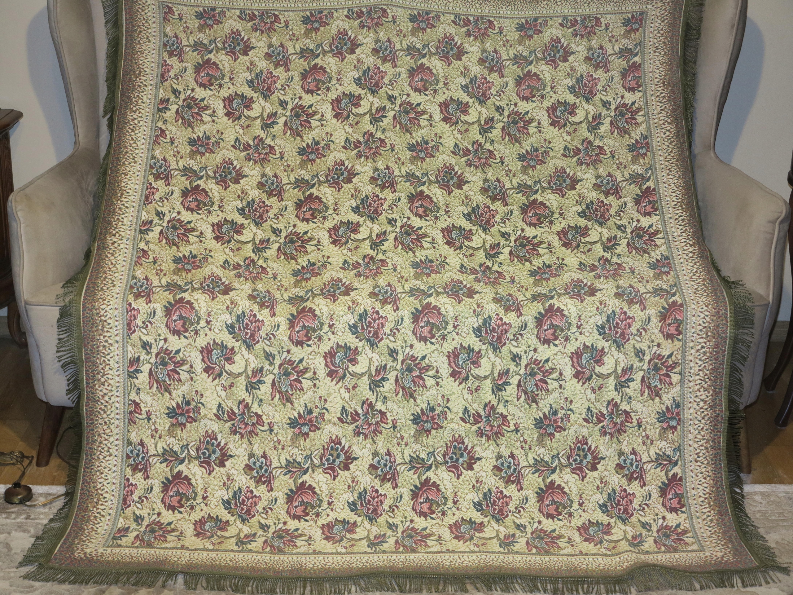 НА АНТИКВАРІАТ - СКАТЕРТИНА ГОБЕЛЕН ПОКРИВАЛО КВІТКОВО ТА СТИЛЬНІ ВЗІЗУРКИ 171/150+5