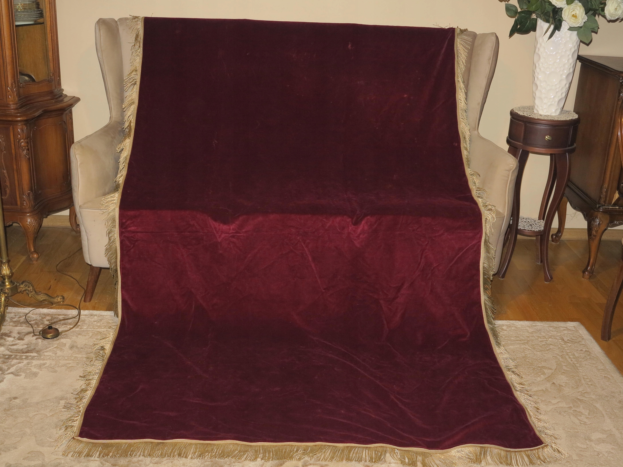 НА АНТИКВАРІАТ - СКАТЕРТИНА ІМЕННА, ОКСАМИТ БАВОВНЯНИЙ, БУРРОУ, БАХРА ЗОЛОТА 234/143+7