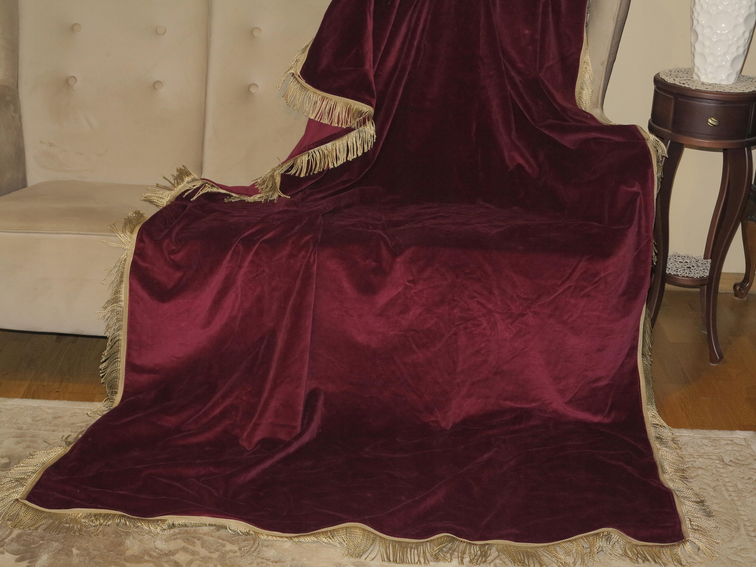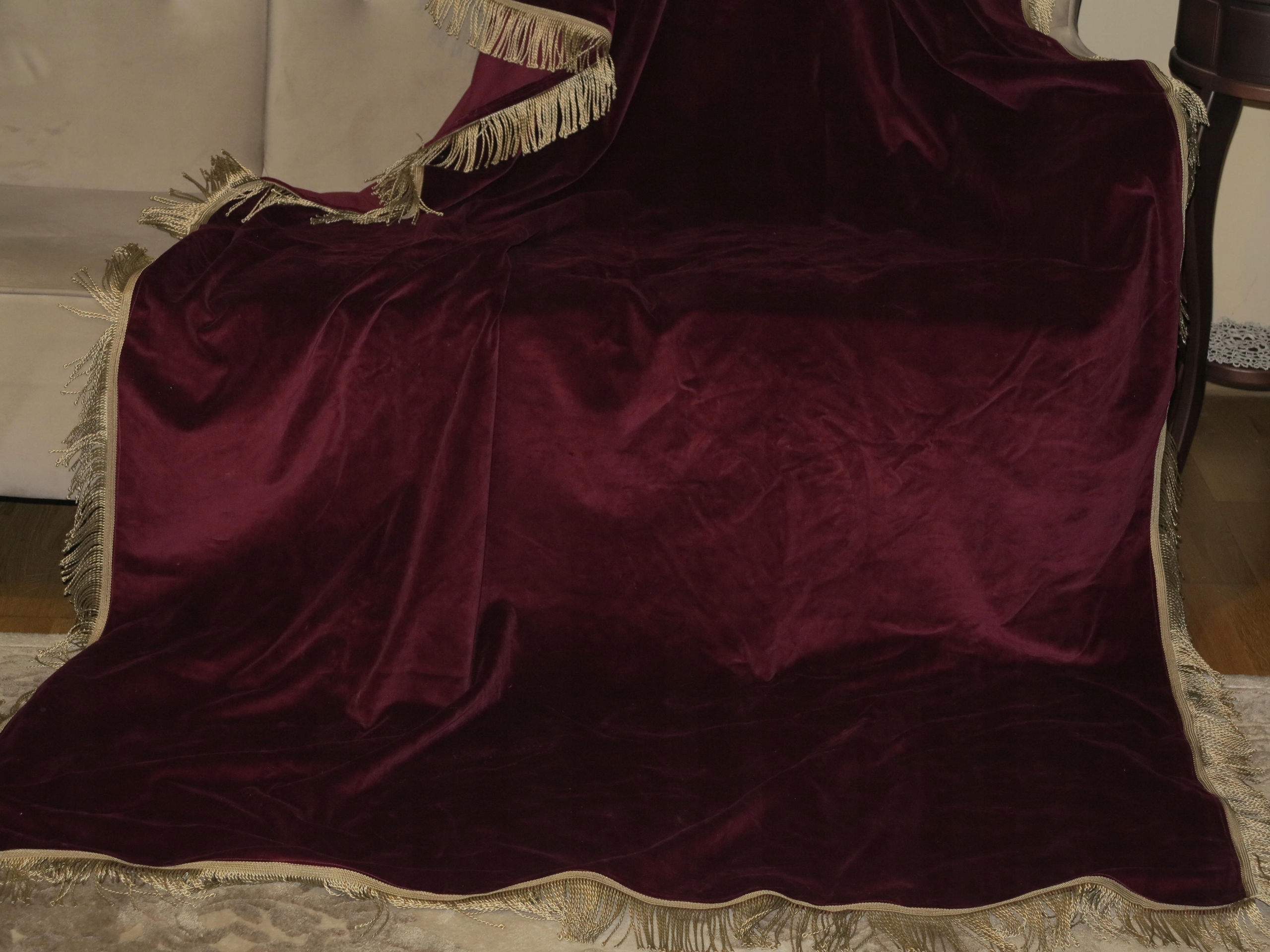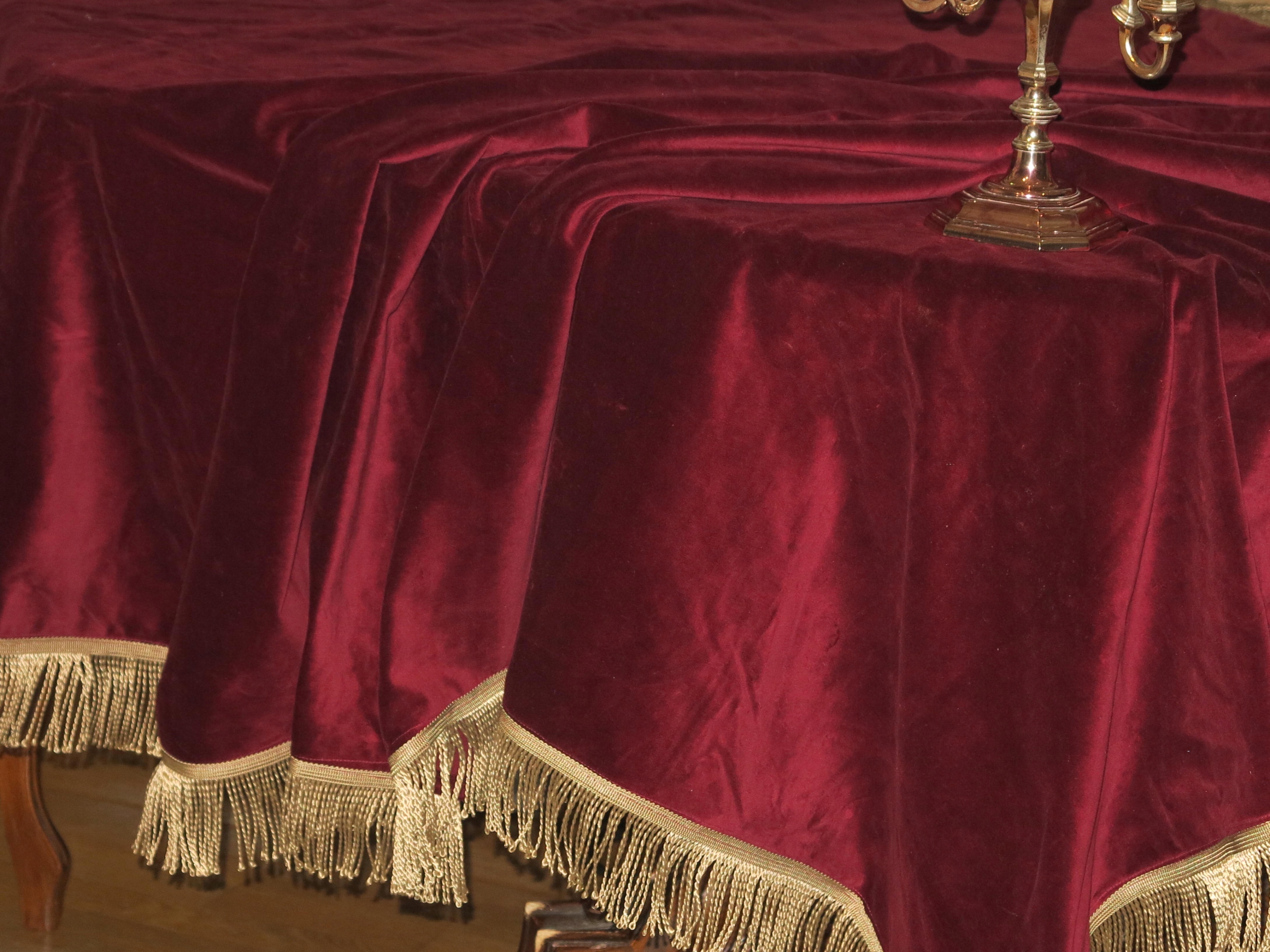 Предмет аукціону унікальної краси, бавовняна оксамитова скатертина відмінної якості. Скатертина навколо оброблена густою бахромою. Скатертина має розміри: довжина 234 см, ширина 143 см + бахрома довжиною приблизно 7 см. Скатертина б/в, але в дуже хорошому стані та якості. Рекомендую, виглядає дуже стильно.