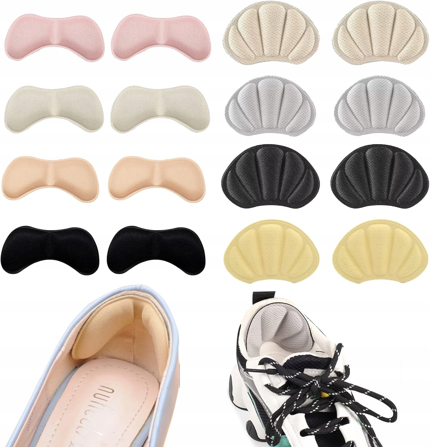 Набір містить 8 пар підборів у різних формах і кольорах, що дозволяє їм відповідати різним стилям та кольорам взуття. Достатня кількість для повсякденного використання та заміни, ідеально підходить для людей, які дбають про комфорт під час носіння взуття протягом дня.