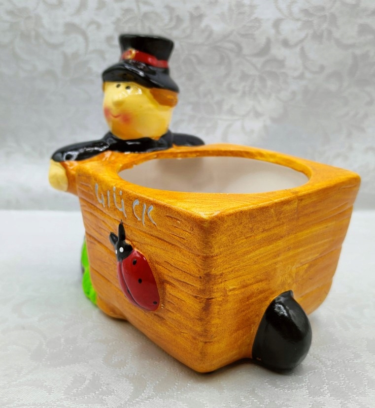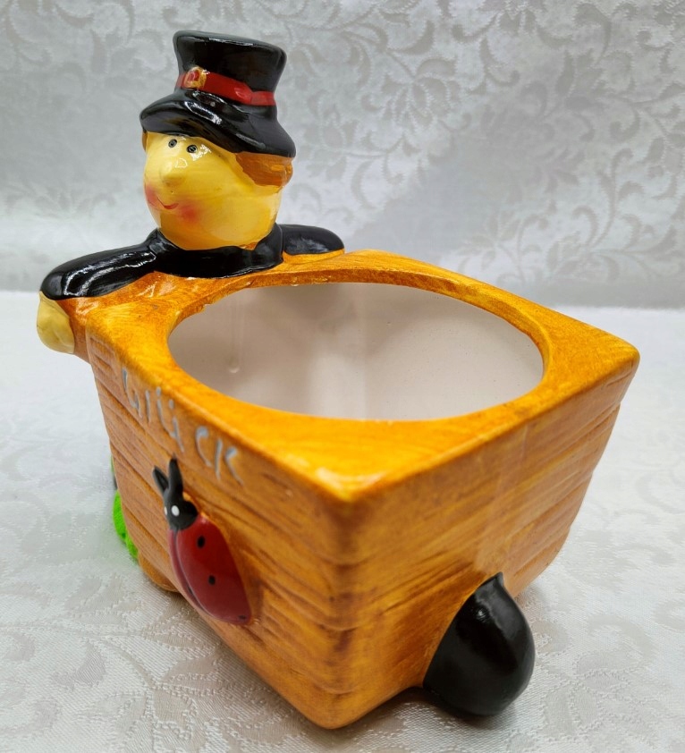 Сажотрус з тачкою, на щастя :-) ЧУДОВА кришка для вазона!