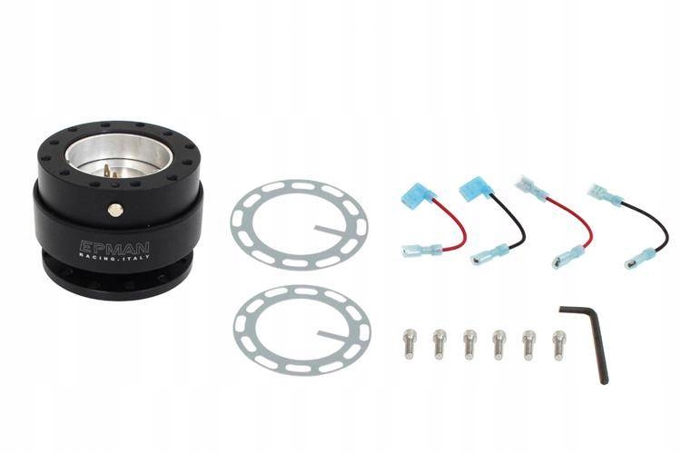 Пристрій для швидкого зняття керма. 2 рухами можна зняти кермо і вийти з автомобіля. Він має 6 кріпильних гвинтів, що дозволяє використовувати його з більшістю рукояток.