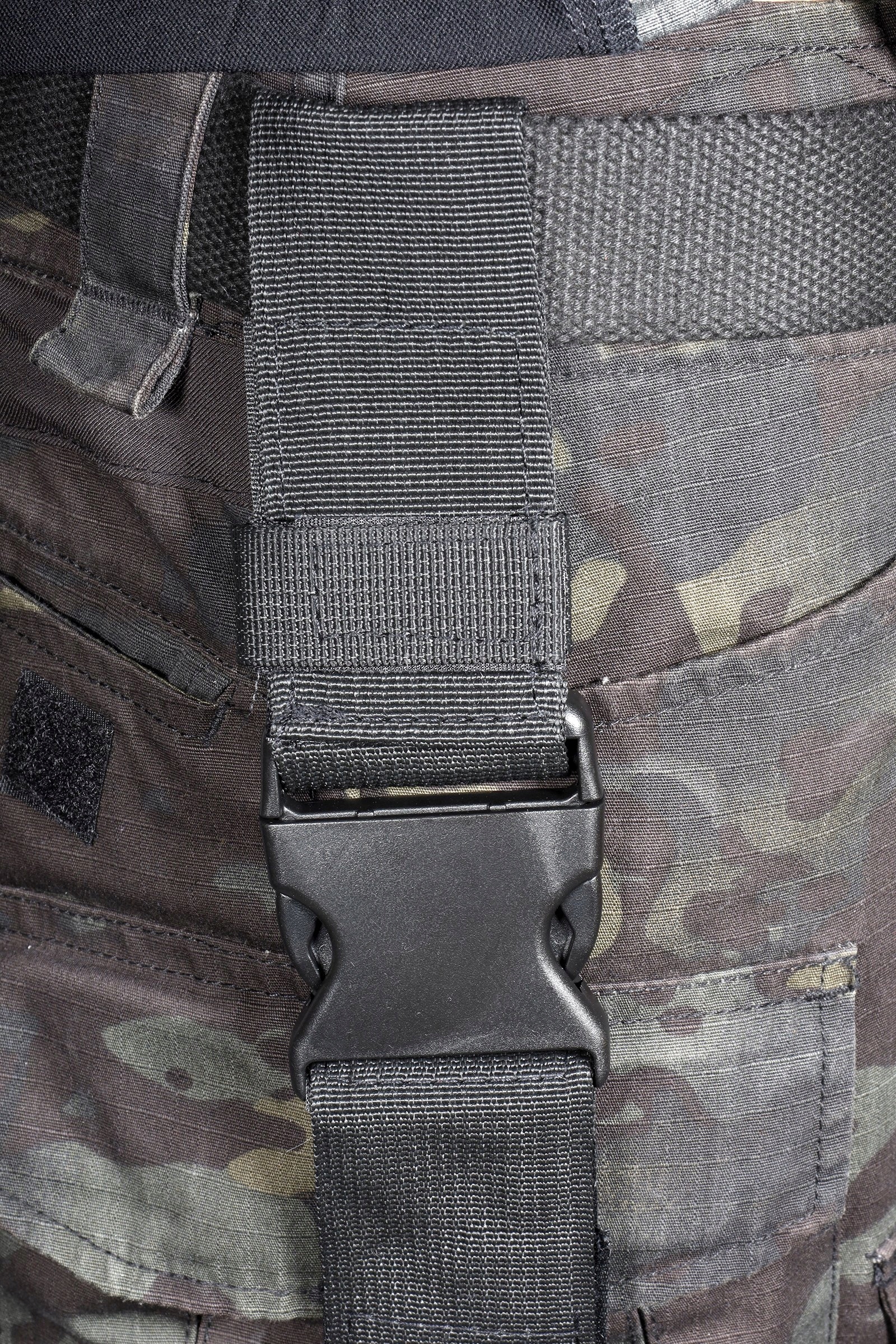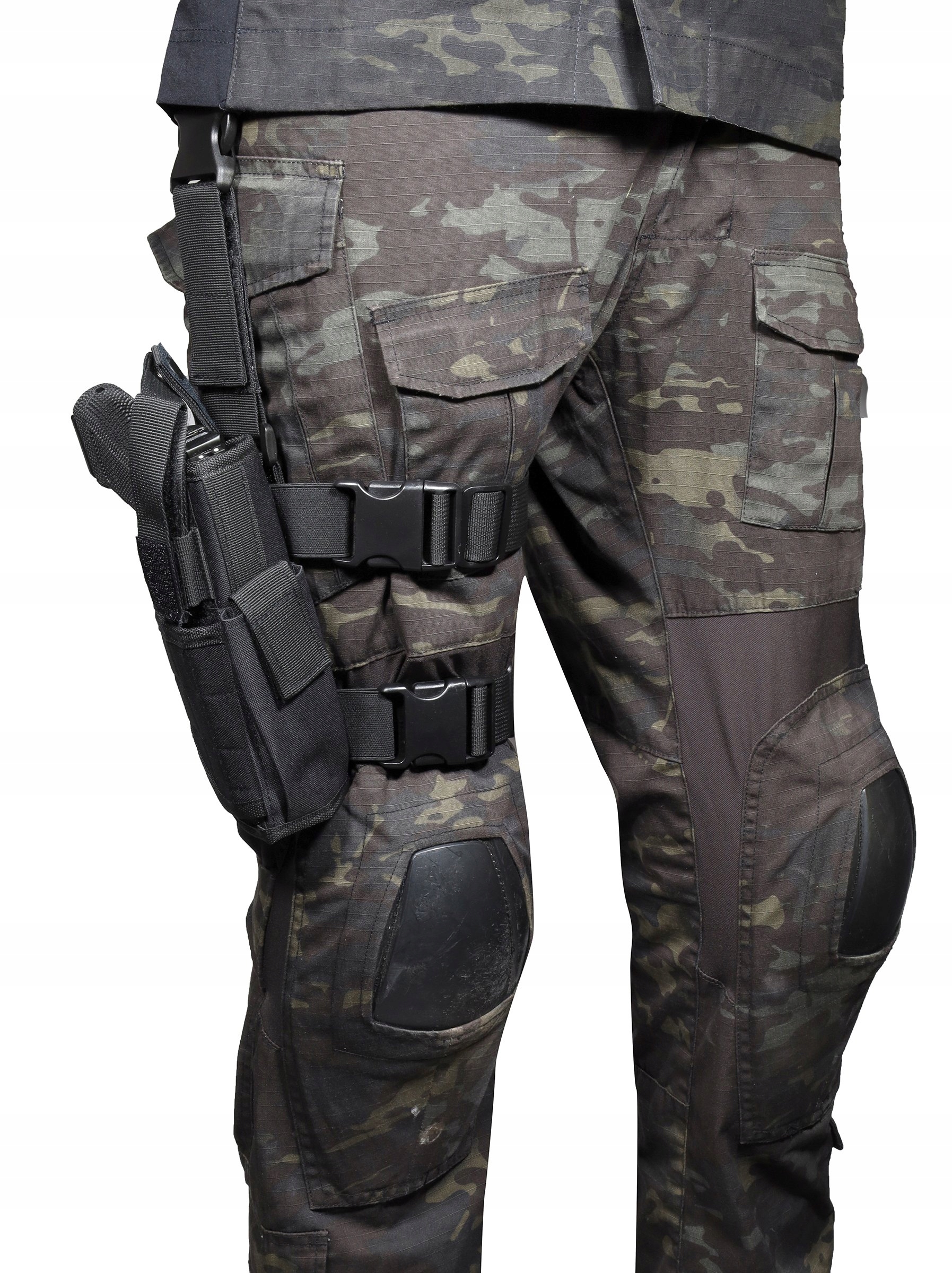 Високоякісна набедренная кобура з однією кишенею для запасного магазину. Є можливість точного регулювання розміру кобури в залежності від типу зброї стрілецької та середньої дальності. Завдяки знімним стегновим ременям кобуру можна розмістити навколо талії.