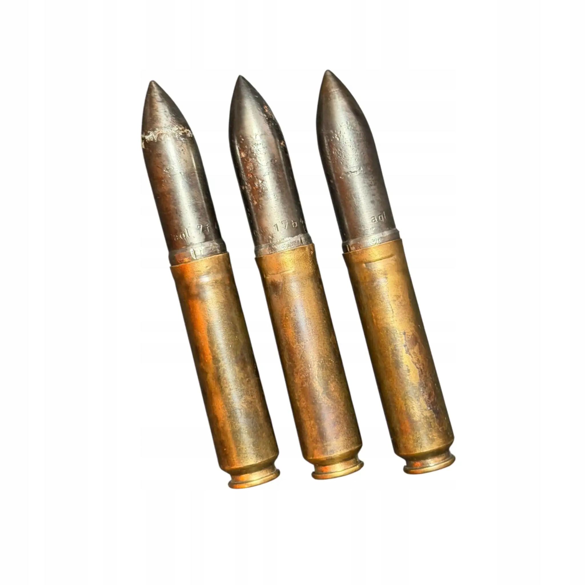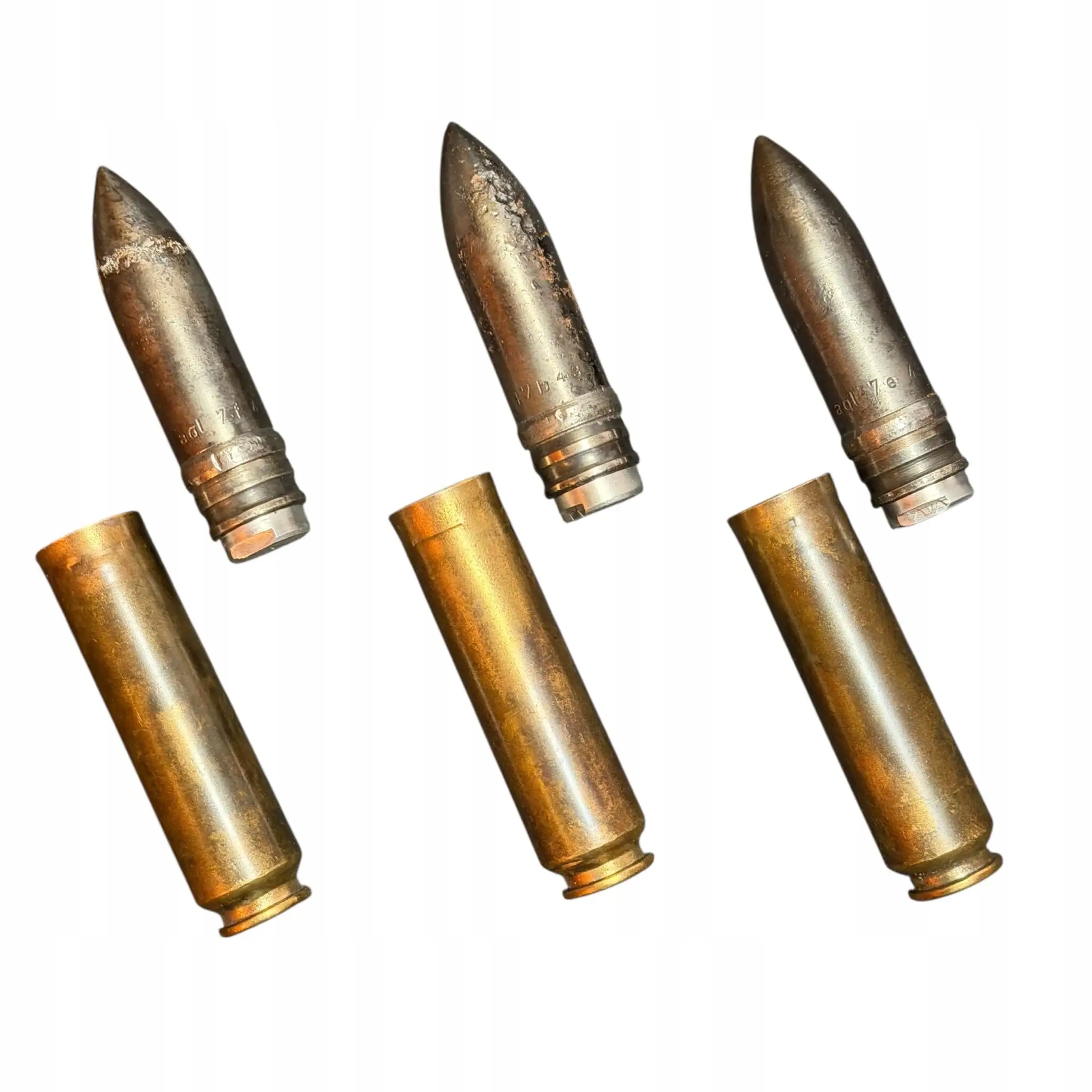 Патрон MG FF 2 CM, куля з гільзою, з рідкісним типом кулі - протитанковою, кулі з маркуванням: cdq 17b 43, aql 7e 43, aql 7f 43, всі з 1943 року, нам вдалося знайти лише один код cdq- Auwaerter u. Bubeck KG, Lederwarenfabrik, Stuttgart, на всіх гільзах однакове маркування (рік) 40 78b BK, всі гільзи з 1940 року, заглушки в кулі алюмінієві, дуже легко відкручуються, Гарно збережений стан, рідко зустрінеш такі чохли в наш час, особливо з протитанковою кулею. 2 см Panzersprgr.Patr. FFM Отець Зерл. – Протитанковий снаряд, пробивши не менше 5 мм броні, має вибухово-осколкову дію, з відстані 100 м під кутом 60° може пробити броньовий лист товщиною 10 мм, снаряд призначений для боротьби з броньованими наземними цілями Виріб повністю безпечний, не містить шкідливих і заборонених матеріалів, весь знешкоджений, порожні металеві снаряди, не підлягають. to UoBiA MG FF був механічним барабаном з 20-мм авіаційною автоматичною гарматою, розробленим у 1936 році німецькою Ikaria Werke Berlin. Це була похідна швейцарська гармата Oerlikon FF F, яка сама була розвитком німецької 20-мм гармати Беккер часів Першої світової війни, і була розроблена для використання в стаціонарних або гнучких установках як наступальна, так і оборонна зброя. Він широко використовувався в цих ролях німецьким Люфтваффе, особливо на ранніх етапах Другої світової війни, хоча з 1941 року його поступово замінили 20-мм MG 151/20 від Mauser.