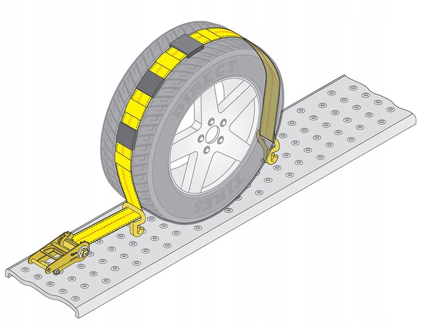 Ця конструкція ідеально підходить для кріплення транспортного засобу на причепі шляхом кріплення ременів на колесах автомобіля, що транспортується.