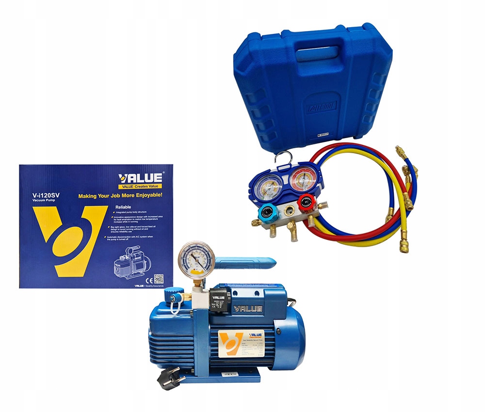 Набір - Вакуумний насос Value V-i120SV + манометри Aitcool R32, R410A