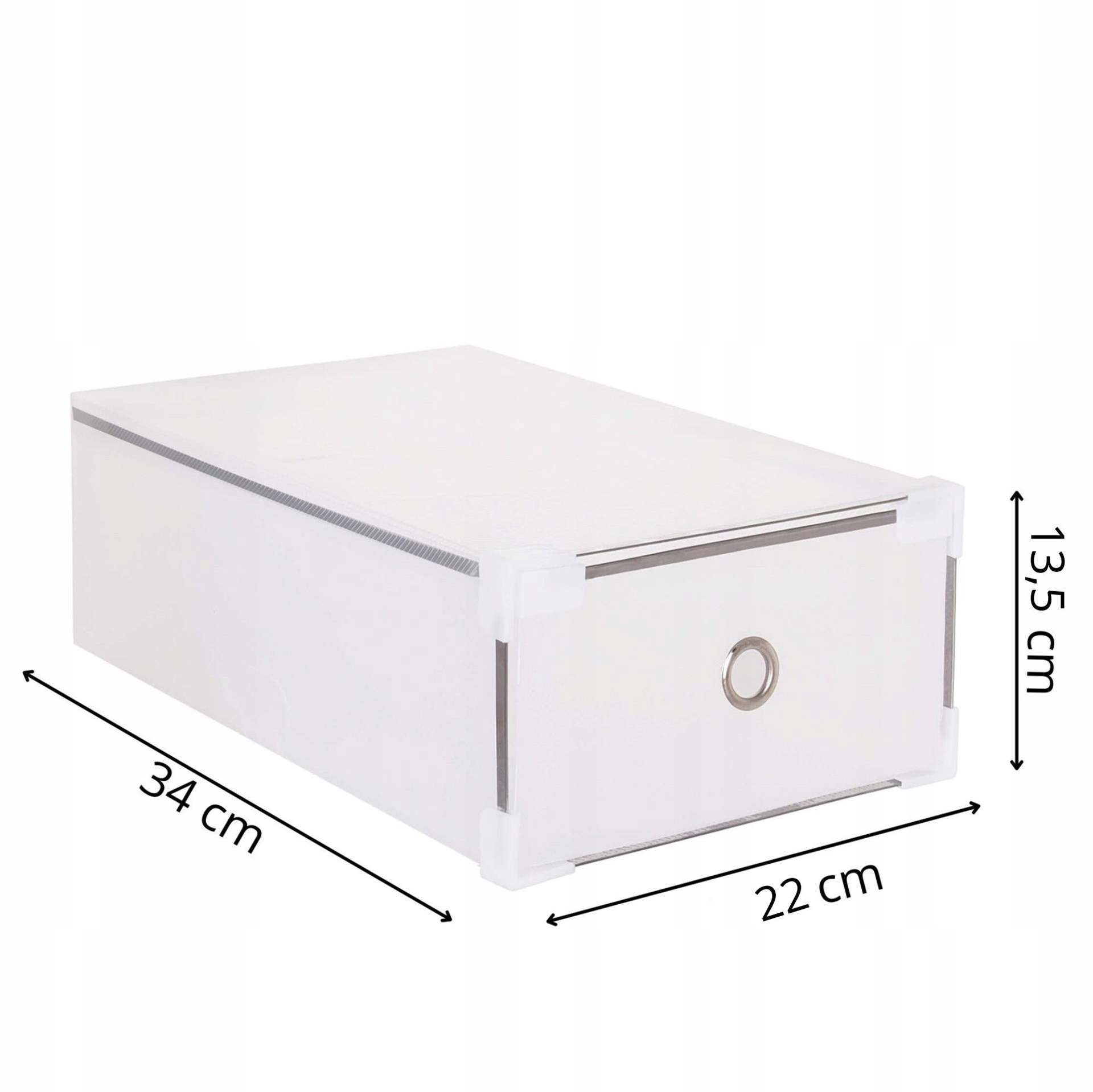 Контейнер для взуття оснащений висувною шухлядою, яка забезпечує швидкий доступ до обраного взуття. Крім того, коробка має спеціальні гачки, які дозволяють з’єднувати коробки між собою, таким чином дозволяючи складати їх. Використовуючи органайзер із застібкою, ваше взуття буде захищене від пилу та вологи.