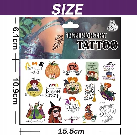 Відповідна сцена Татуювання фокус-покус підходять для будь-якого випадку , як-от .денні народження, тематичні вечірки, вечірки на Хеллоуїн, сімейні вечірки, шкільні вечірки, подарують вам безмежне задоволення