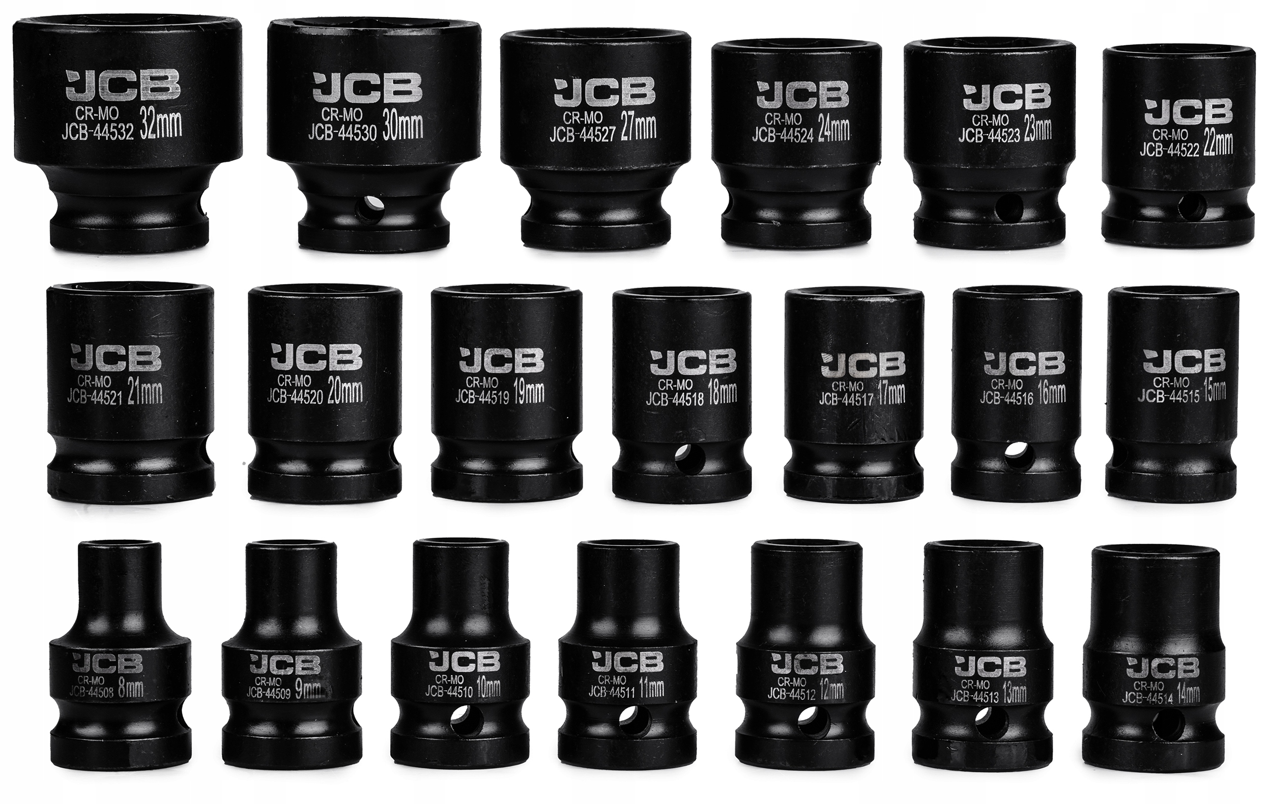 Набір 1/2 "ударних ковпачків 6-дамп 20 штук кріплення в валізі JCB