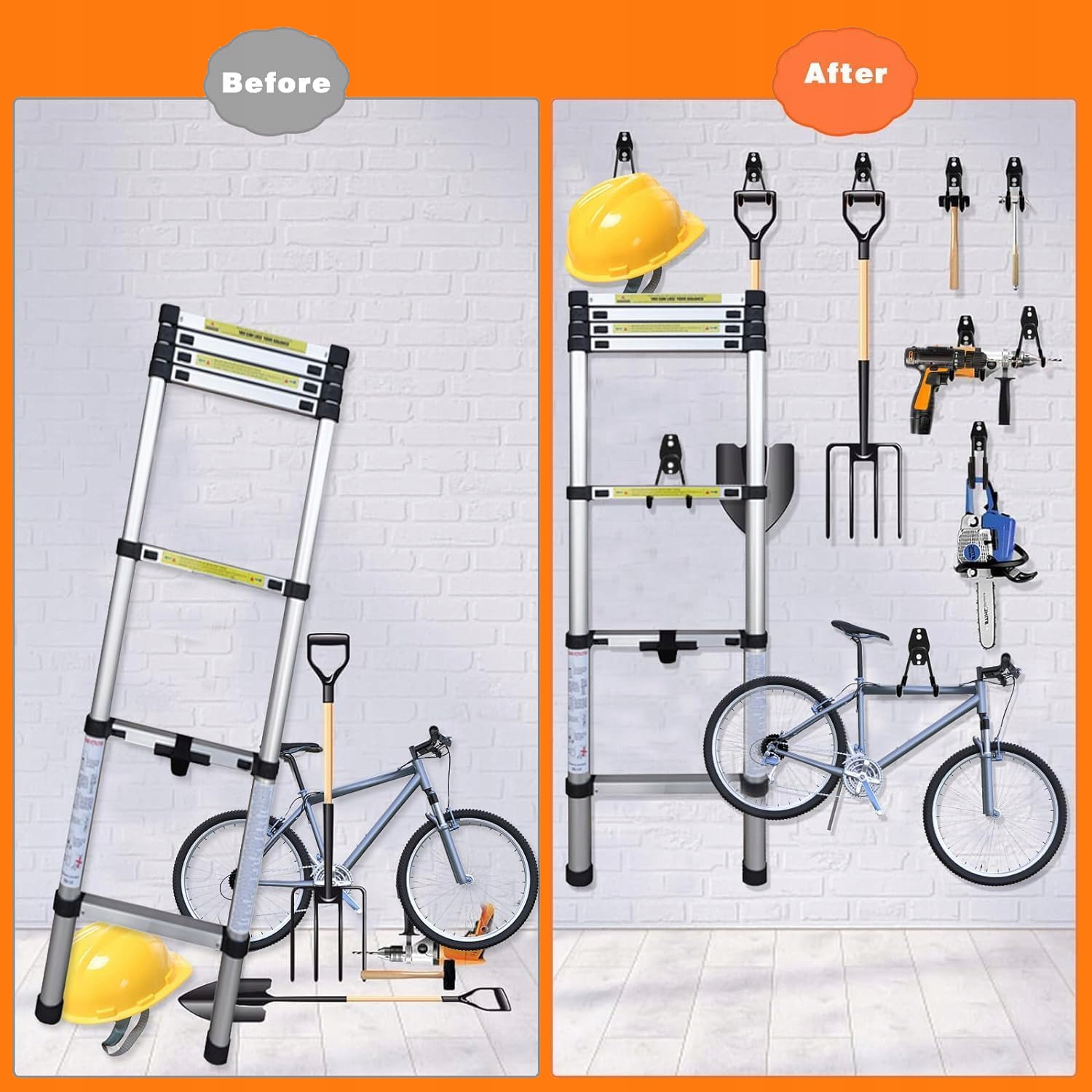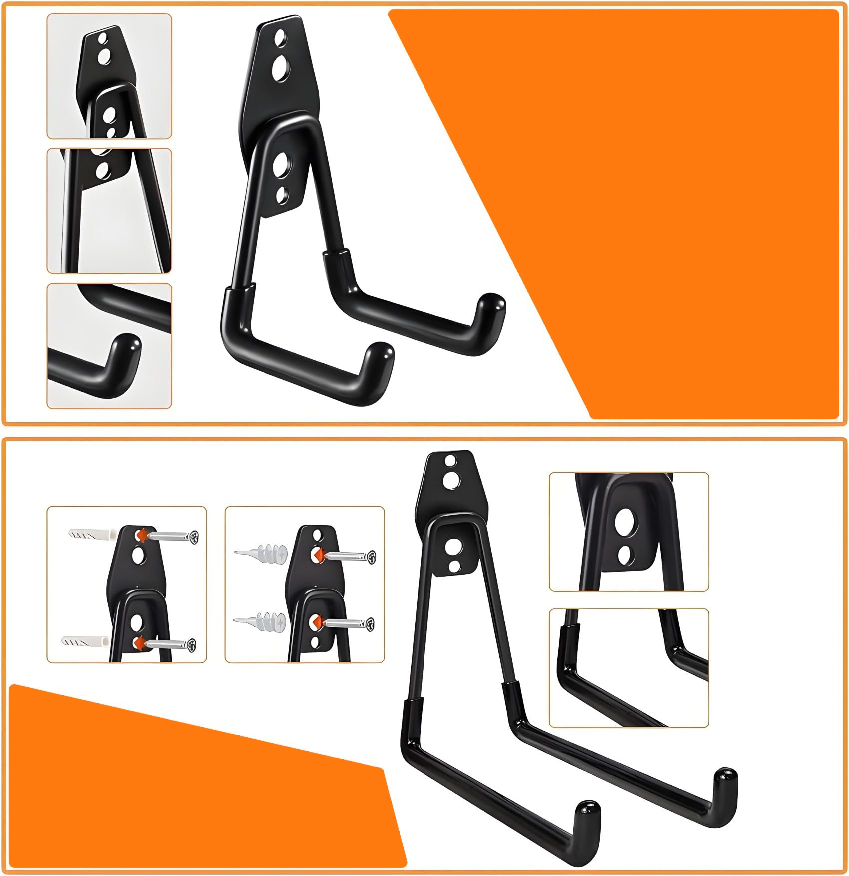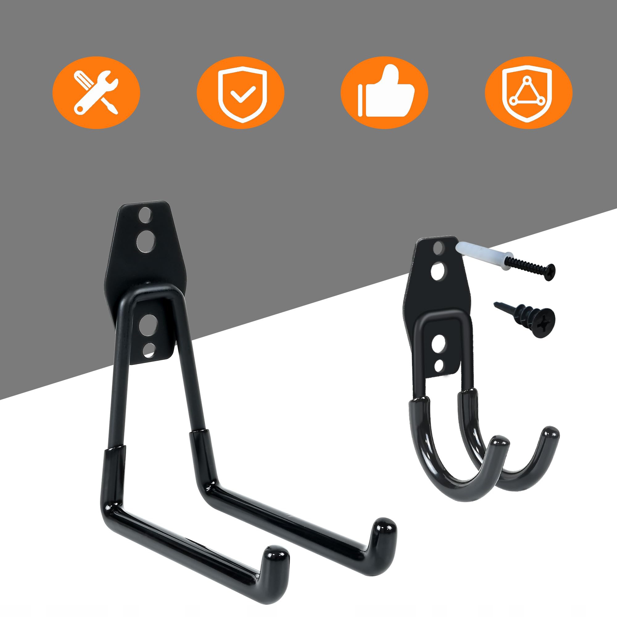 Гачки підходять для підвішування та зберігання важких і великих предметів, таких як драбини, велосипеди, садові шланги, складні стільці, зварювальні інструменти, фітнес- і спортивне обладнання, сноуборди тощо в гаражах, садах, магазинах, сараях та інших місцях. Звільніть місце у своєму гаражі, сараї чи майстерні. Гаражні гачки – чудовий подарунок до Дня батька чи новосілля!