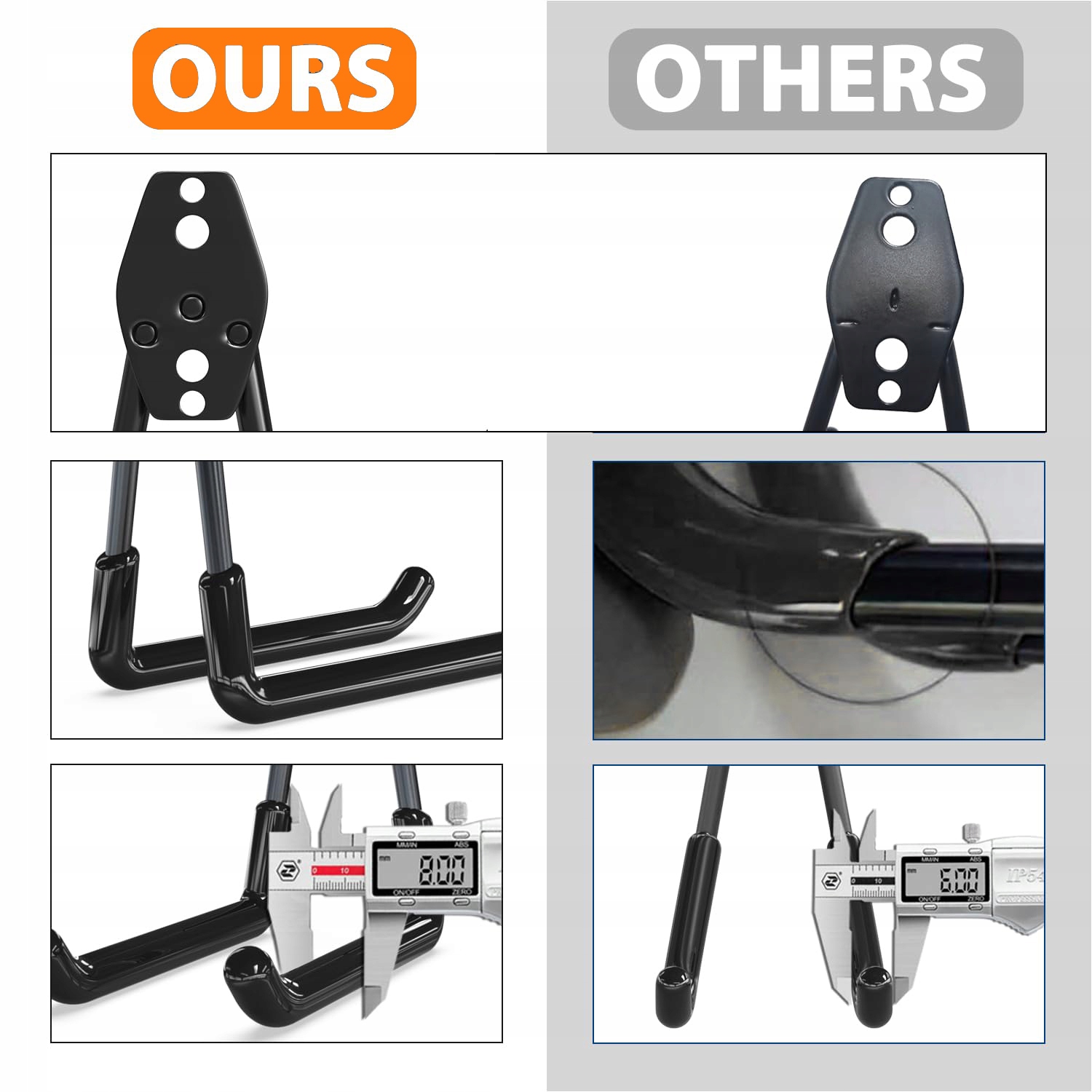 Стійкі гачки мають екологічно чисте, протиковзке захисне покриття ПВХ, яке запобігає подряпинам на поверхні предмета та подовжує термін його служби, забезпечуючи надійне нековзке захоплення.