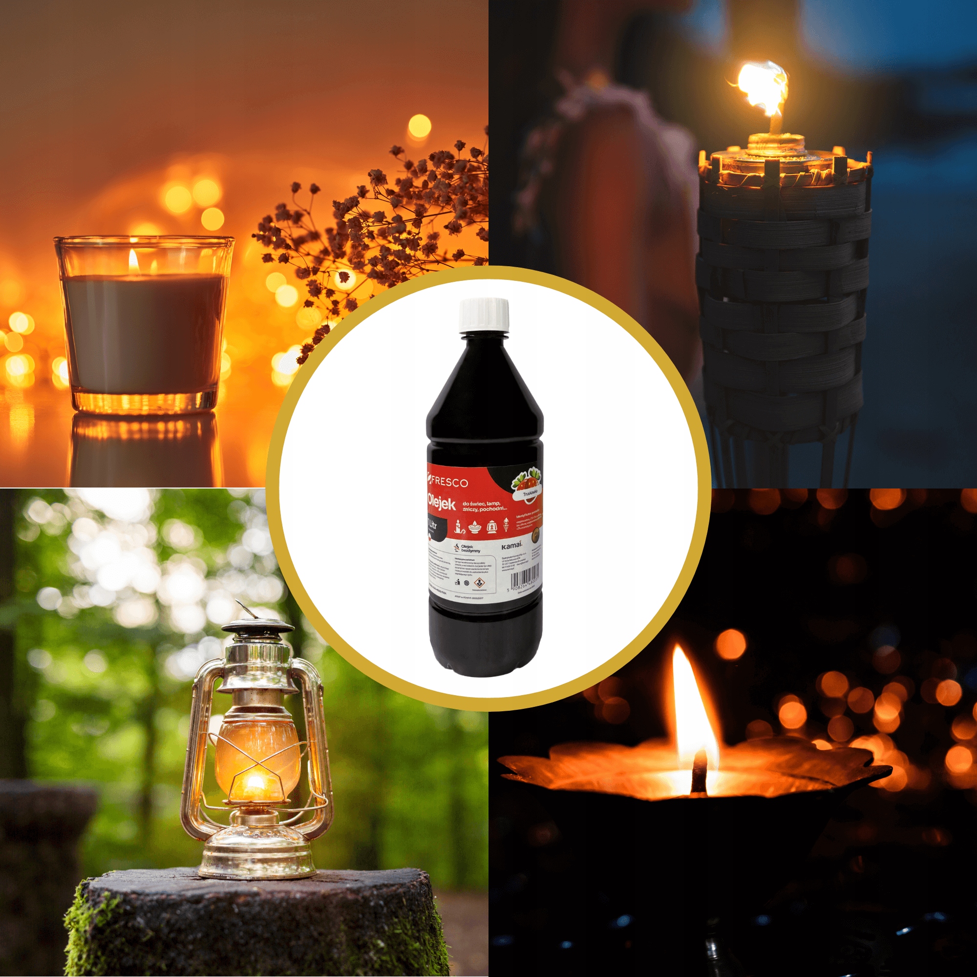 Стабільний і тривалий вогонь – масло гарантує спокійне рівномірне горіння без ризику мерехтіння або раптового згасання. Ідеально підходить для факелів, свічок, ліхтарів і садових свічок.