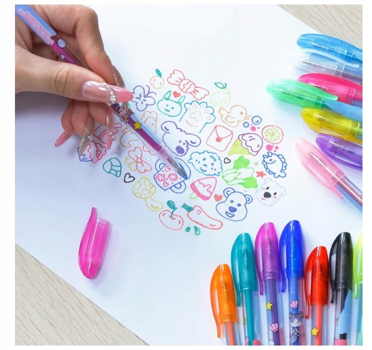 - БЕЗПЕЧНІ ТА НЕТОКСИЧНІ: безпека є нашим головним пріоритетом, тому наші блискучі гелеві ручки виготовлені з використанням агресивних хімікатів, вони нетоксичні та безпечні для будь-якого віку. Дайте волю своїй творчості або поділіться цими ручками з молодими художниками.