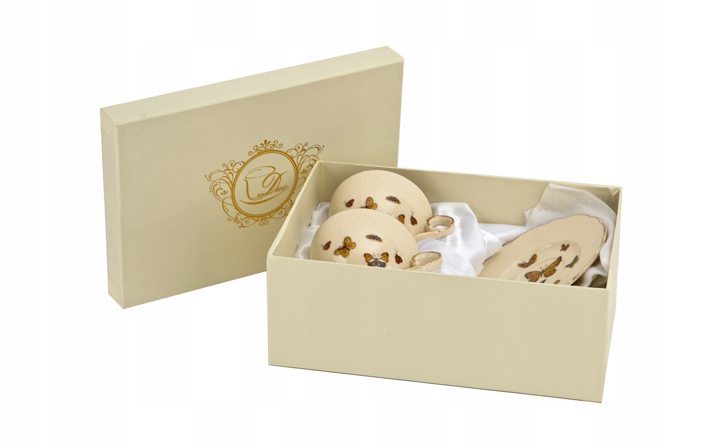 Набір 2 чашки 125 мл з блюдцем Butterflies колекції ECRU виготовлений з порцеляни найвищої якості кремового відтінку, прикрашений золотими вставками та різнобарвним метеликом мотиви.
