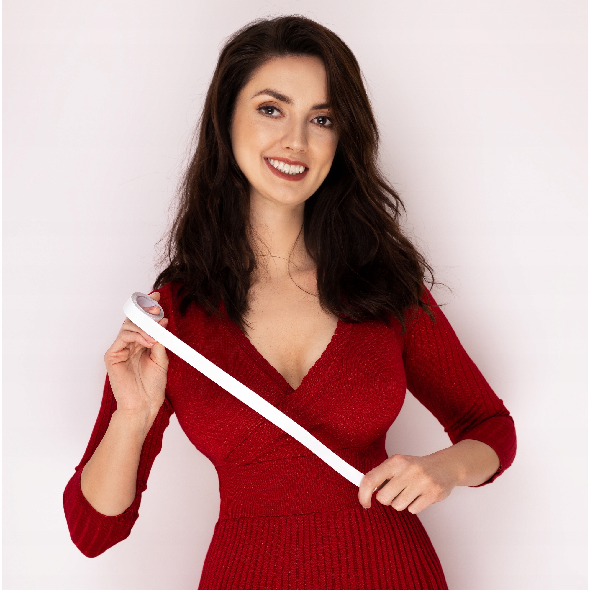 ✅ Двостороння самоклеюча стрічка - ідеальне рішення для нарядів з великими декольте та вирізами. Також рекомендується для елегантних сорочок на ґудзиках, де матеріал часто відкривається і видно оголене тіло. Стрічка допоможе вам уникнути збентеження.