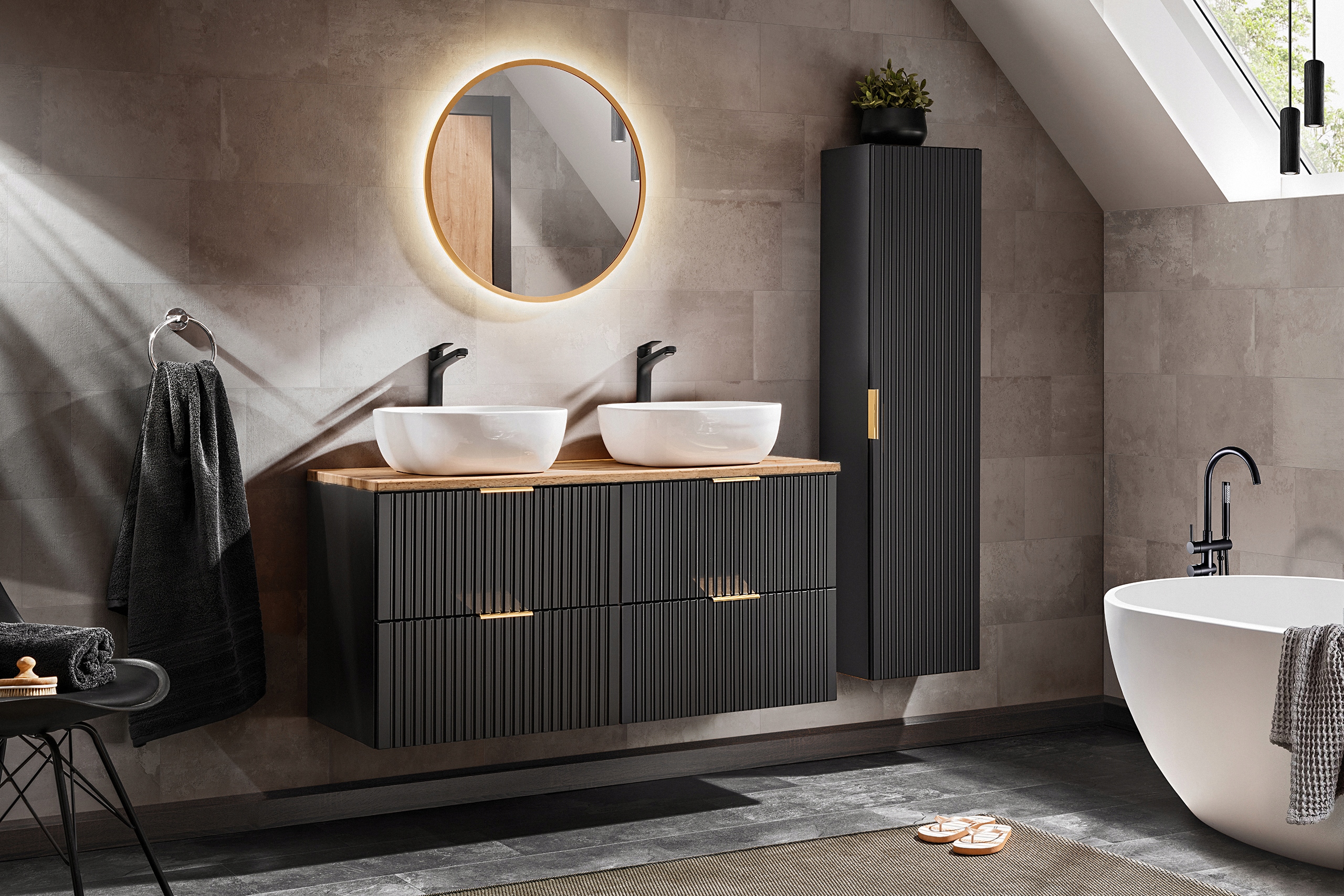 Набір з 2 тумб ADEL BLACK 120 см для ванної кімнати з умивальниками та стільницею WOTAN
