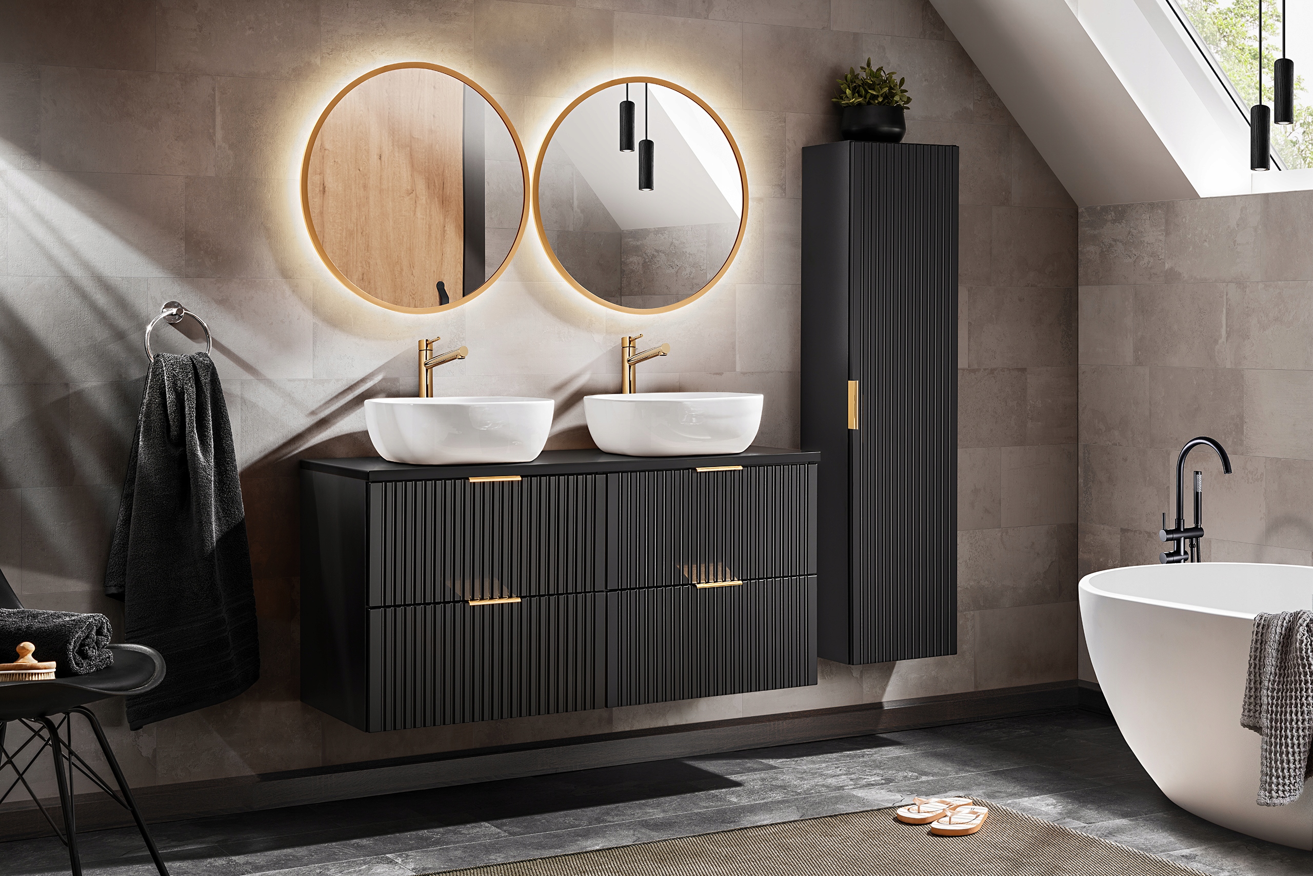 Набір 2 тумби під умивальник 120 см ADEL BLACK 82-60 – розташування:
