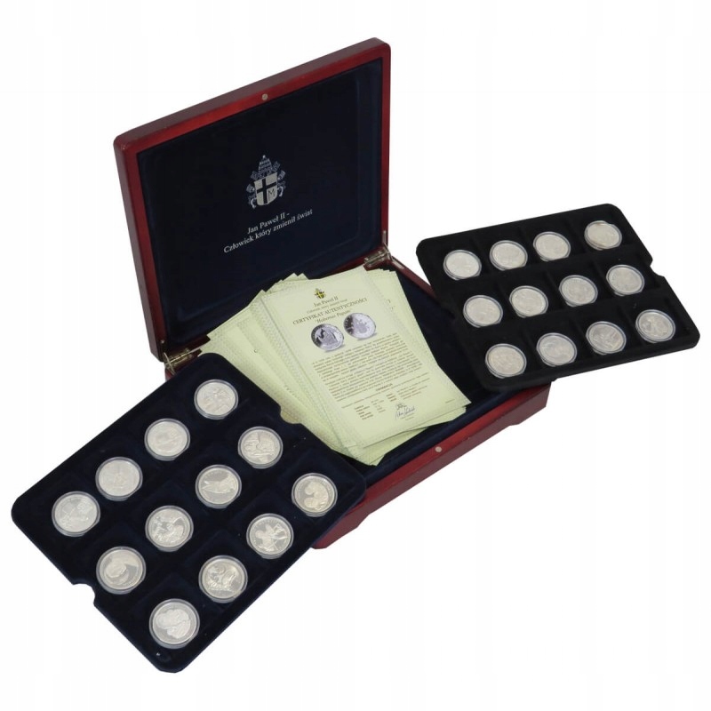 Набір з 24 медалей з Іваном Павлом ІІ, срібло + касета + грамоти