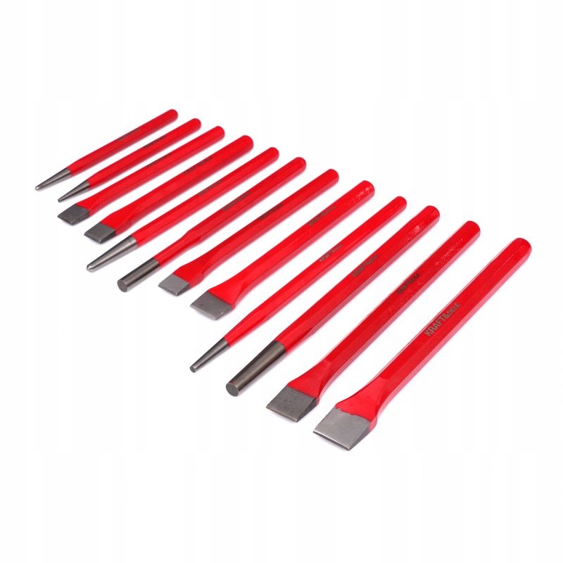 ☑️ Пуансон і зубило виготовлено з легованої сталі CR V і головки з хромованадієвої сталі, пройшовши загальну термічну обробку для отримання твердості головки від 48 до 52°.