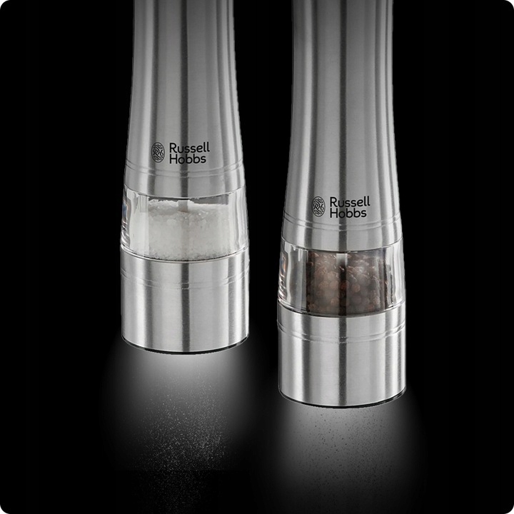 ⭐Подрібнювачі для солі та перцю Russell Hobbs переконують завдяки керамічному подрібнювальному елементу, кнопці керування однією рукою та освітлення в нижній частині м’ясорубки.
