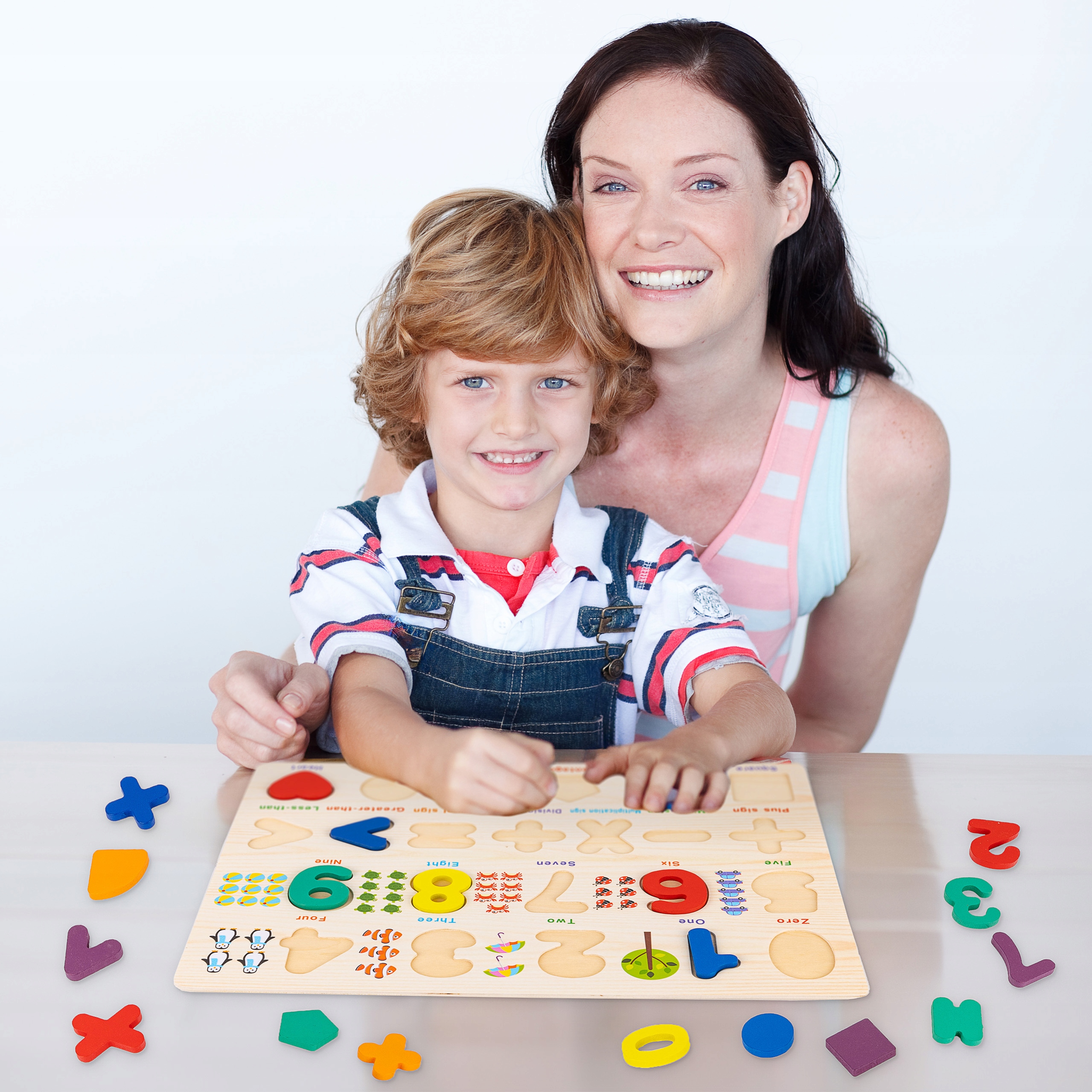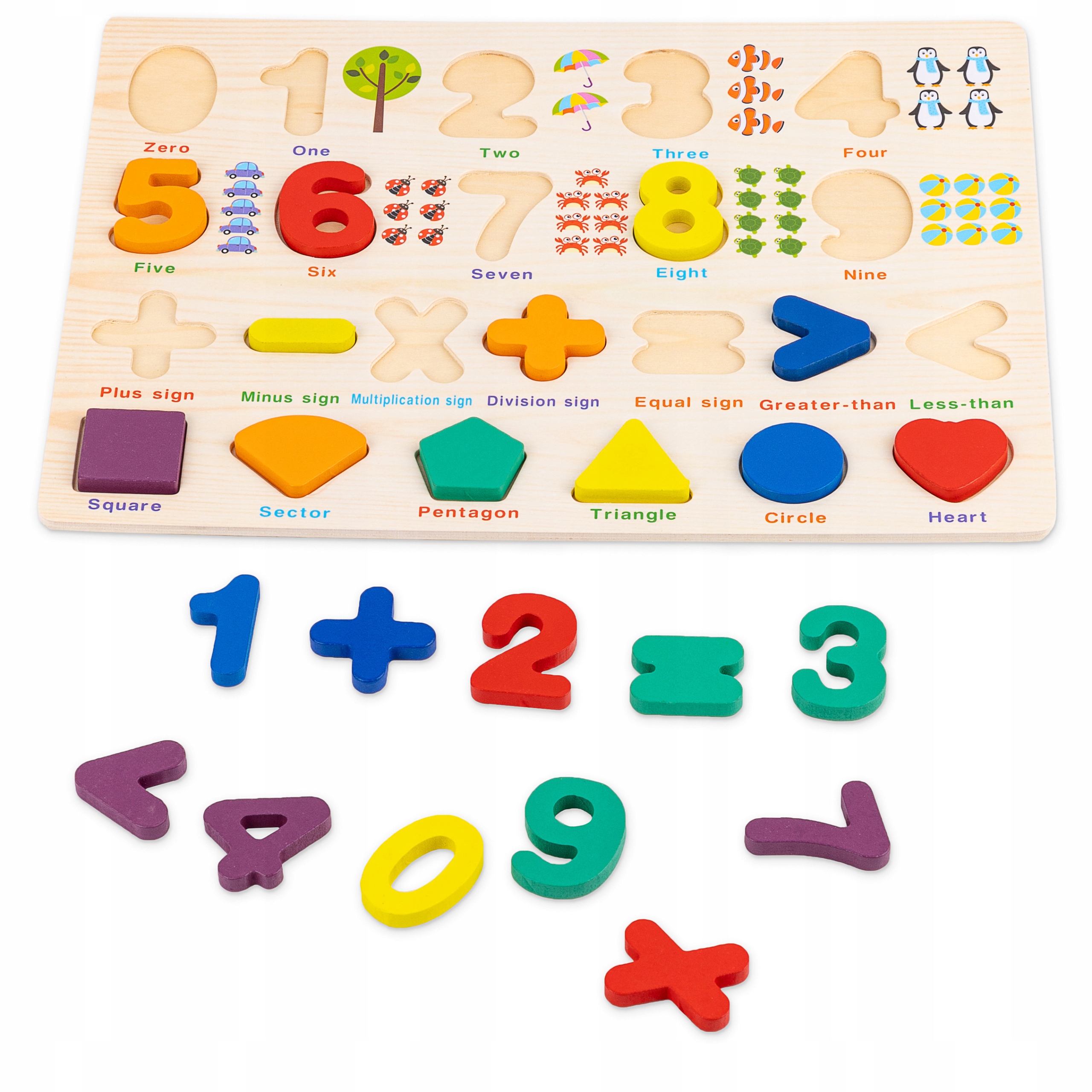 Гра з дерев'яними пазлами не тільки захоплює малюка, але й дозволяє йому познайомитися з основами математики та вивчення іноземної мови. Маніпулюючи цифрами та читаючи написи англійською, дитина вчиться розпізнавати цифри, вивчає базовий словниковий запас і отримує перший контакт з англійською мовою. Це цікавий спосіб заохотити дитину навчитися рахувати та набути основ спілкування глобальною мовою.